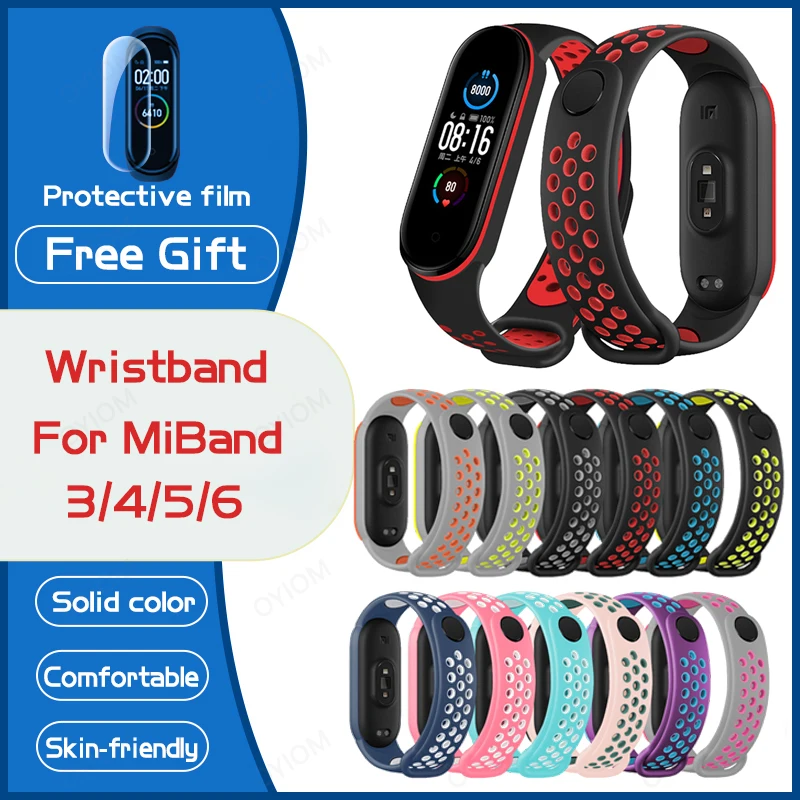Ремешок силиконовый для Xiaomi Mi Band 3 4 5 6, Двухцветный силиконовый смарт-браслет Mi3 M4 M5 Mi6, стеклянная пленка