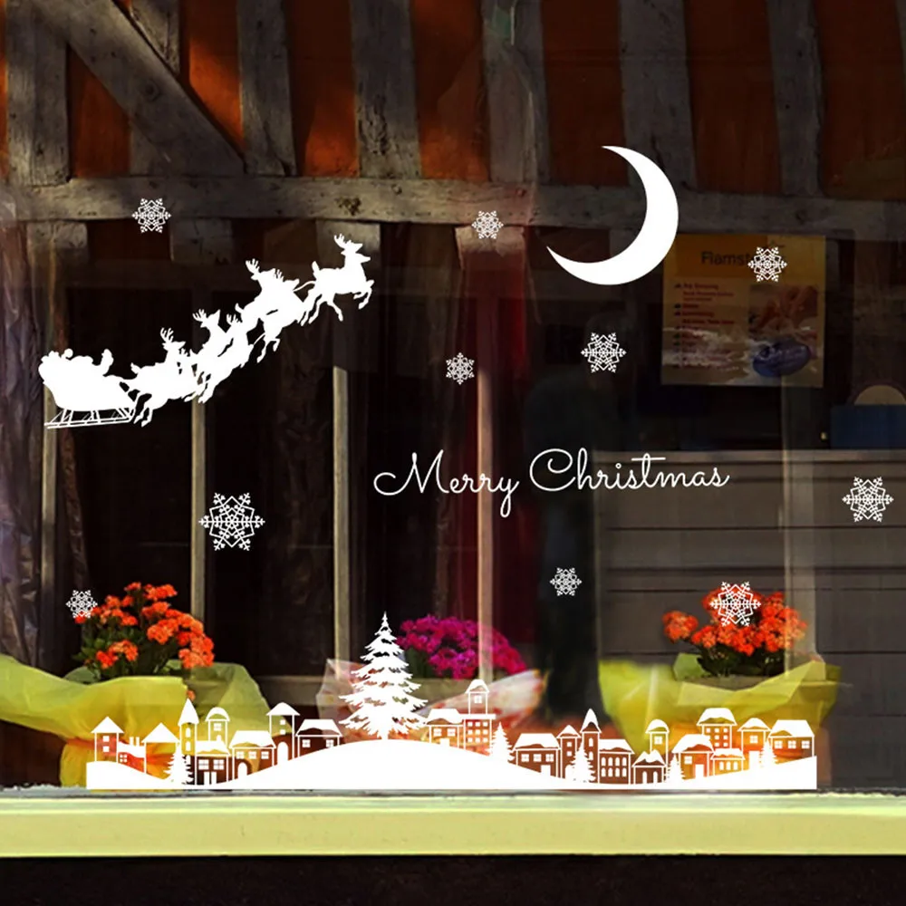 Рождество Ресторан торговый центр украшения снега стекла окна съемные наклейки