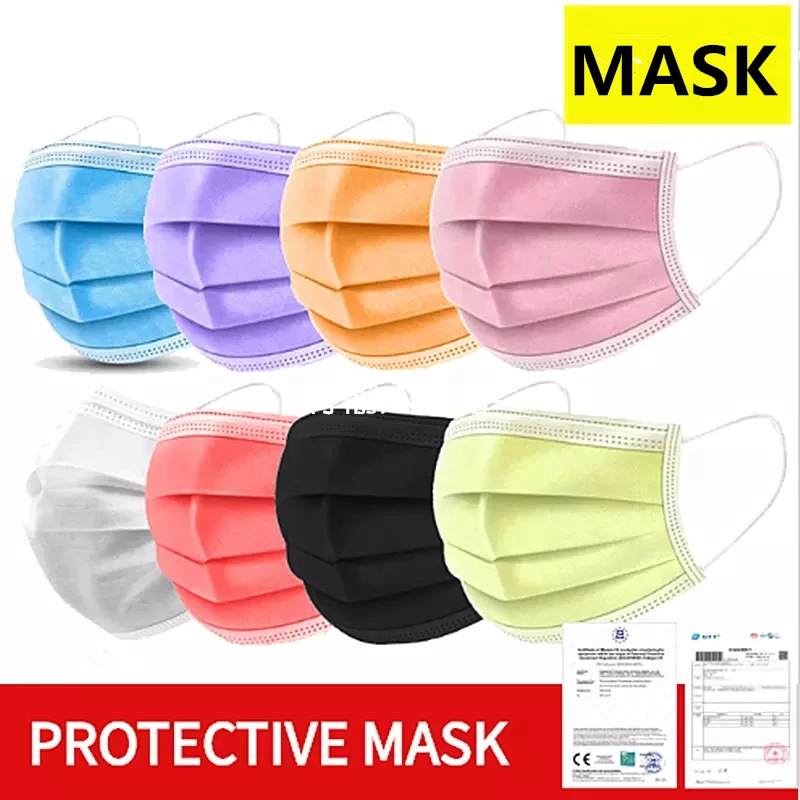 50 шт одноразовые маски для лица промышленные 3 слойные петли для ушей
