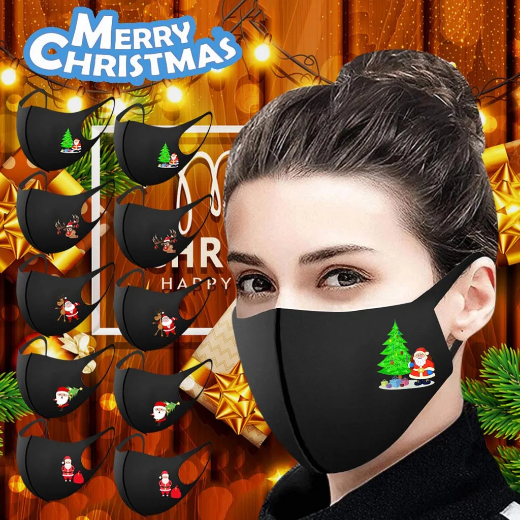Рождественская Пылезащитная маска для лица, многоразовая цветная ткань, модная моющаяся уличная дышащая маска для лица, Лидер продаж 2021