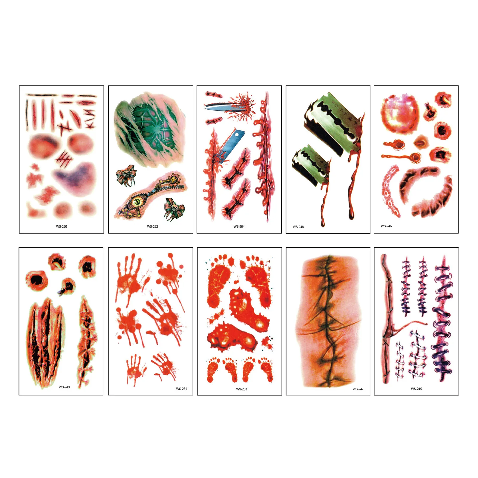 10 наклеек-тату на Хэллоуин, имитация ужасов, кровотечения, шрамов, наклейки сделай сам, украшение на Хэллоуин, товары для вечерние