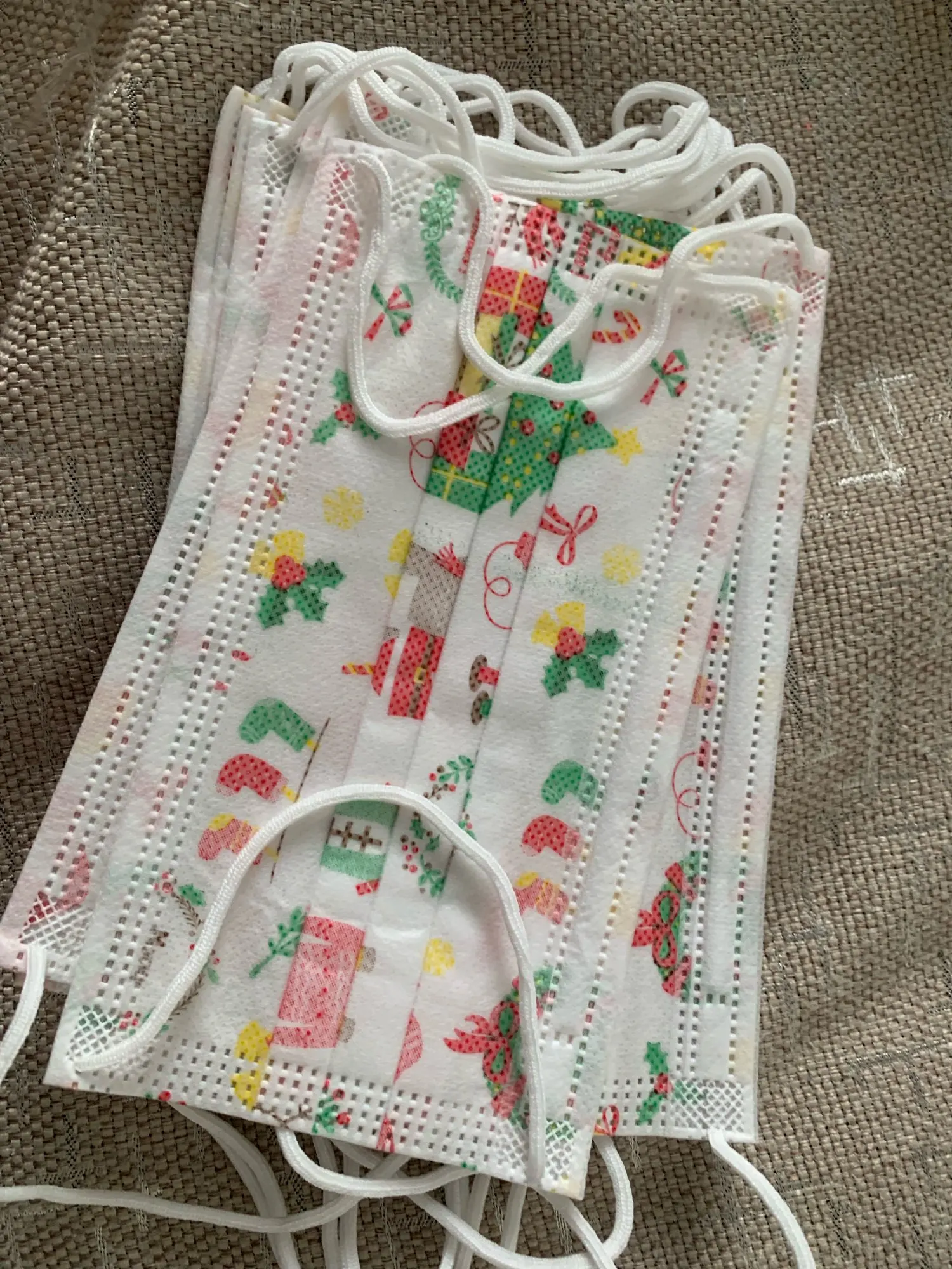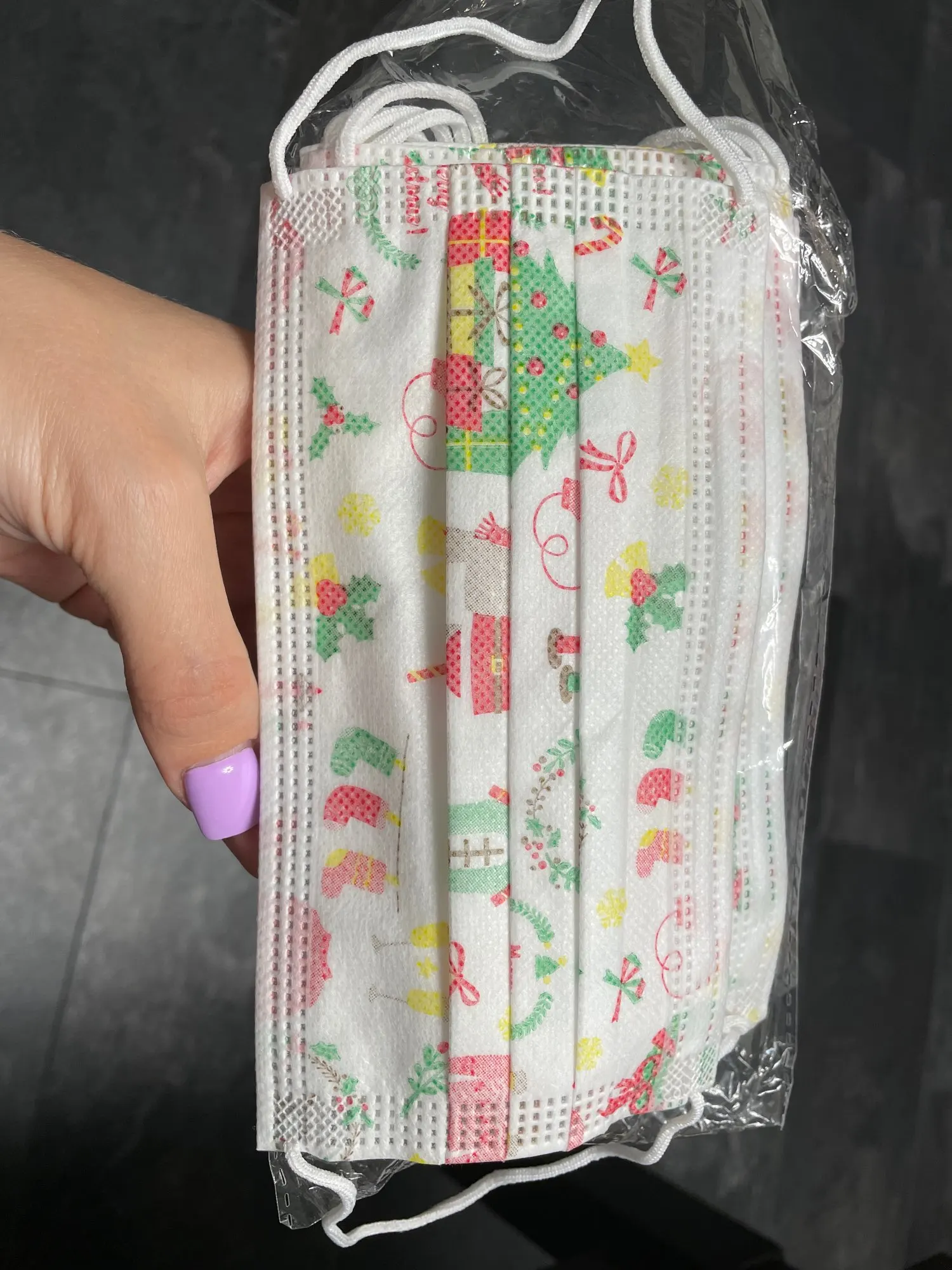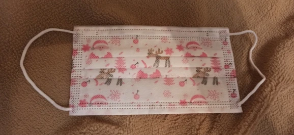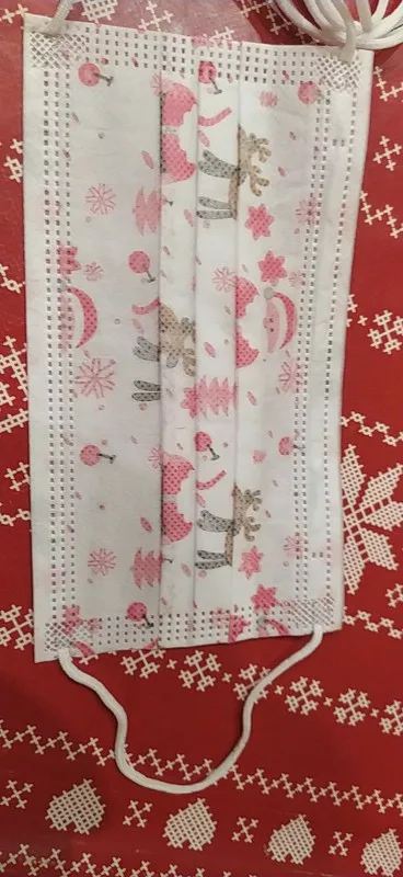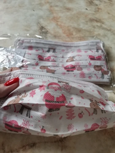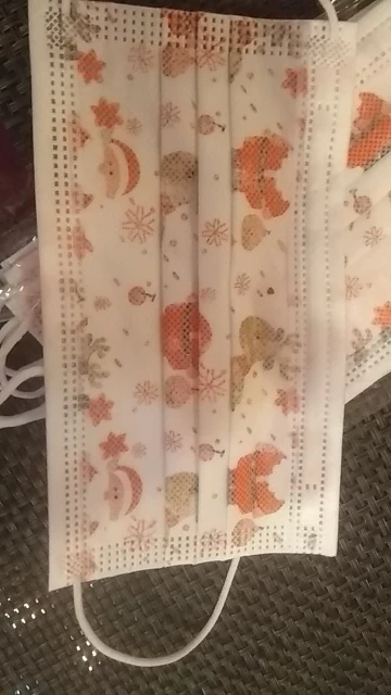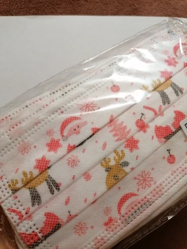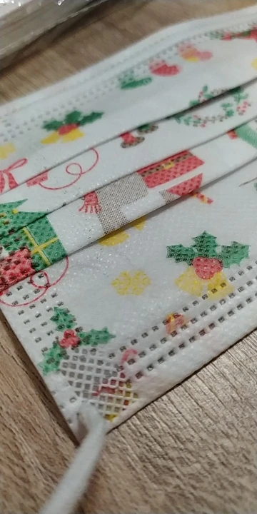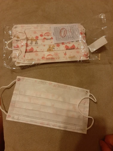Маски класні, цупкі, не розлазяться одразу, як візьмеш в руки. Малюнок звичайно трохи не так виглядає, як на картинці, але це особливості типографії через складки на масці. Рекомендую, новорічний настрій з ними гарантовано!