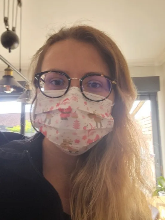 Маска такая же, как в описании. На Новый год на работу самое то!