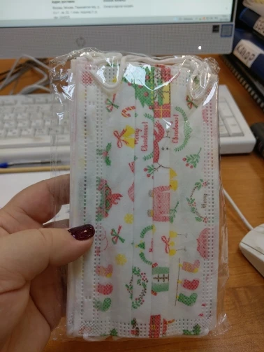 Заказала 12.10, получила 31.10.2021 (Москва). Соответствует описанию. Маска хорошего качества. Резинки хорошо держатся. Рисунок соответствует фото Продавца. Размер обычной маски, не сползает и не давит на уши. Продавца и товар рекомендую. Веселенькая такая, новогодняя.