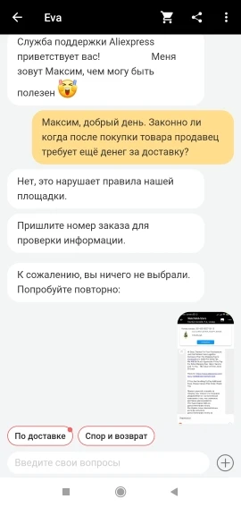 Он так и не пришел, и мне пришлось открыть спор, потому что продавец не ответил