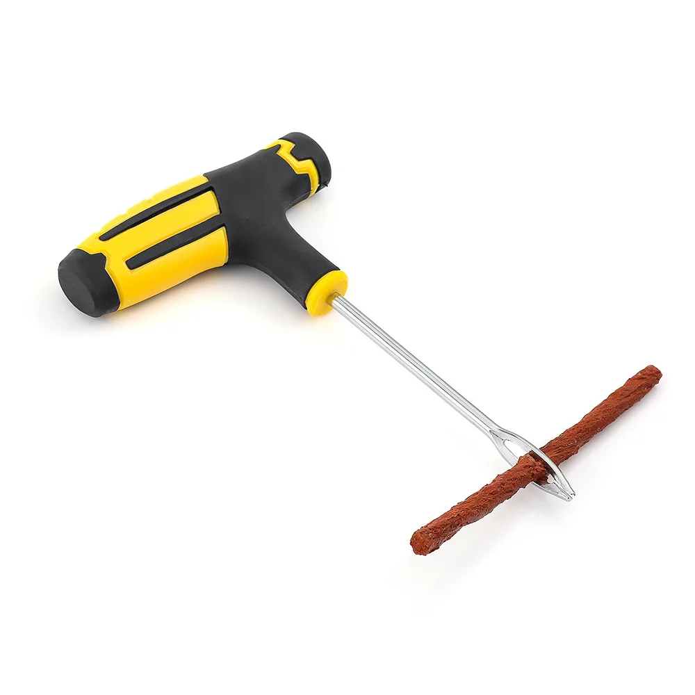 Особенности:Аварийный автомобиль прокол Ремонтный комплект для бескамерных шин.Набор для ремонта автомобильных шин позволит вам быстро и эффективно исправить проколы.Прочные пластиковые ручки обеспечивают отличное сцепление.Инструкции включены на обратной стороне упаковки.Незаменимы для автомобилей с бескамерными шинами.Этот инструмент Rasper позволяет увеличивать и очищать отверстия в шинах.Игольчатый инструмент позволяет вставлять резиновую полосу шин.Включает 5 ремонтных резиновых полосок.Полезный инструмент для хранения в автомобиле с запасными колесами. Посылка:Аварийный бескамерный набор инструментов для ремонта проколов шин включает в себя:1 инструмент Rasper.1 игольчатый инструмент.1 резиновый раствор.5x ремонтные полоски.