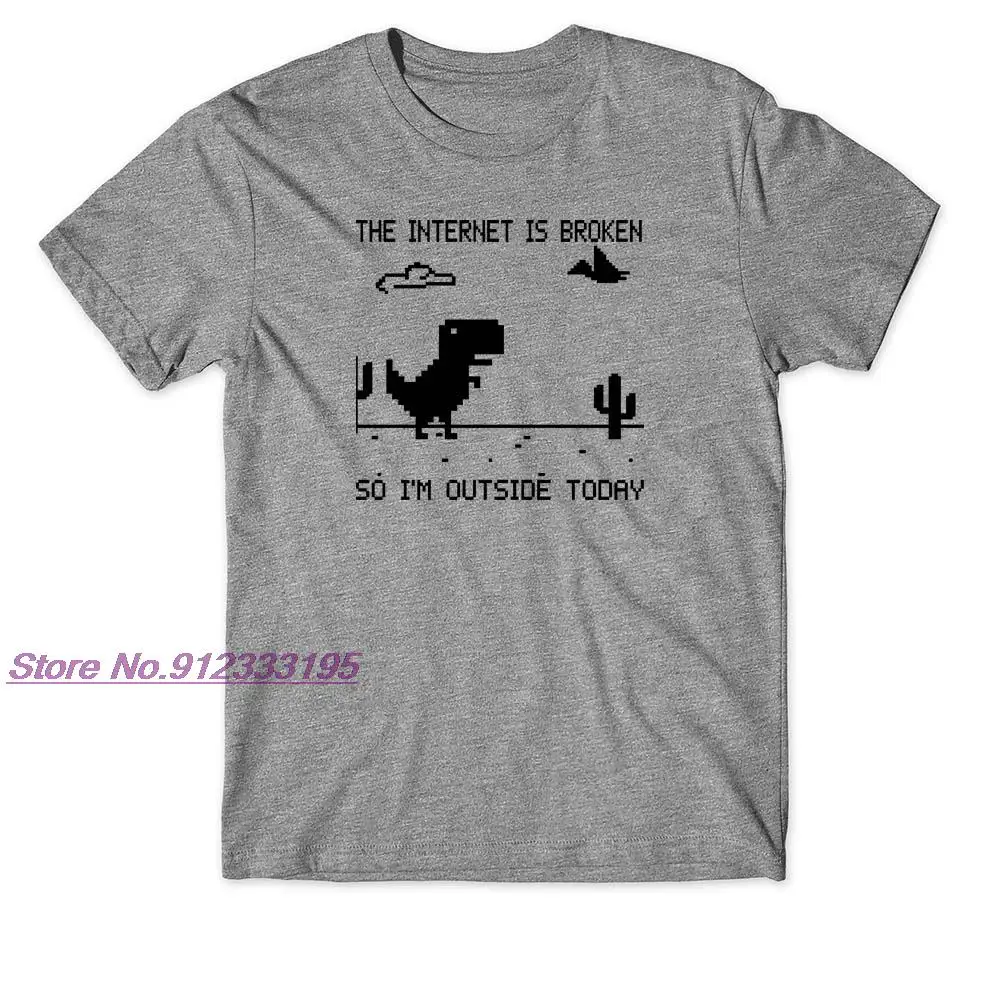 Футболка унисекс из 100% хлопка, хромированный динозавр в автономном режиме, программатор Интернет-сломан, забавная шуточная Подарочная футболка