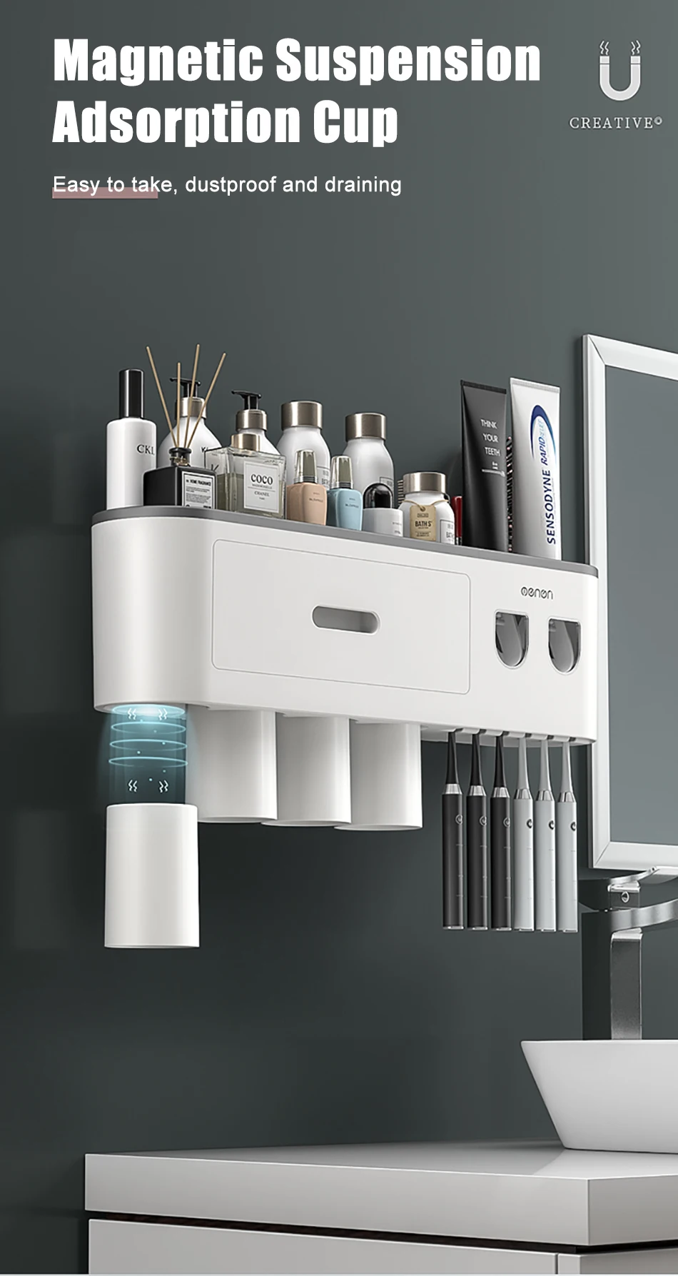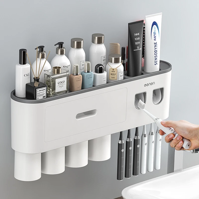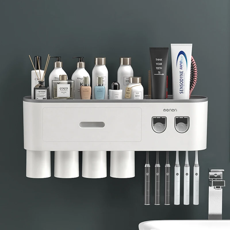 Держатель для зубных щеток TERUP, двойной Автоматический Диспенсер зубной пасты, магнитный поглощающий инвертированный стакан, стеллаж для хранения, аксессуары для ванной комнаты