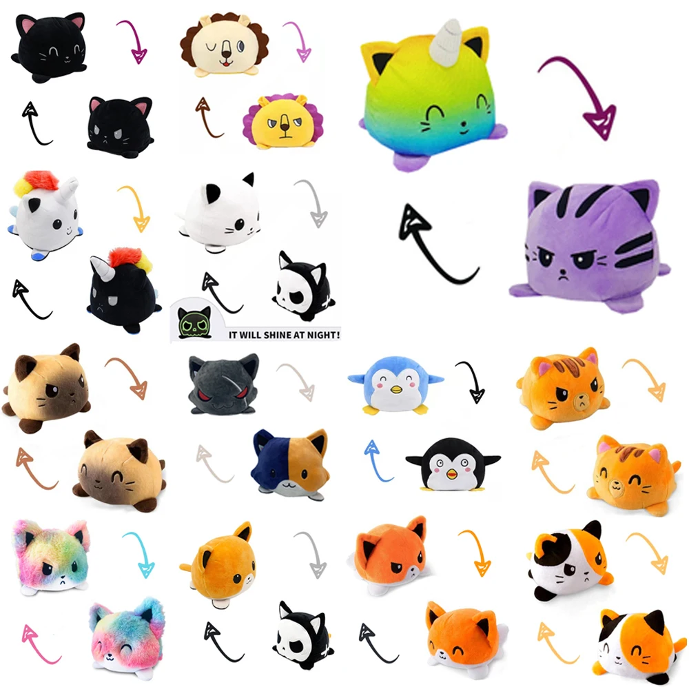 Двусторонняя плюшевая кукла-Кот, плюшевая игрушка-единорог, 22 вида