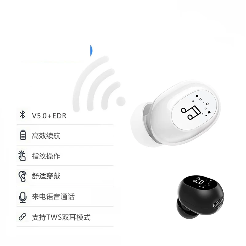 Миниатюрные наушники-вкладыши 5,0 Bluetooth, Hi-Fi беспроводная гарнитура с микрофоном, спортивные наушники-вкладыши, гарнитура с стерео звуком для всех телефонов