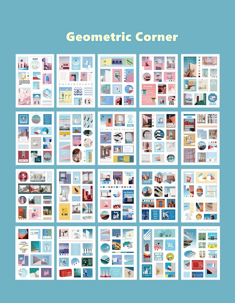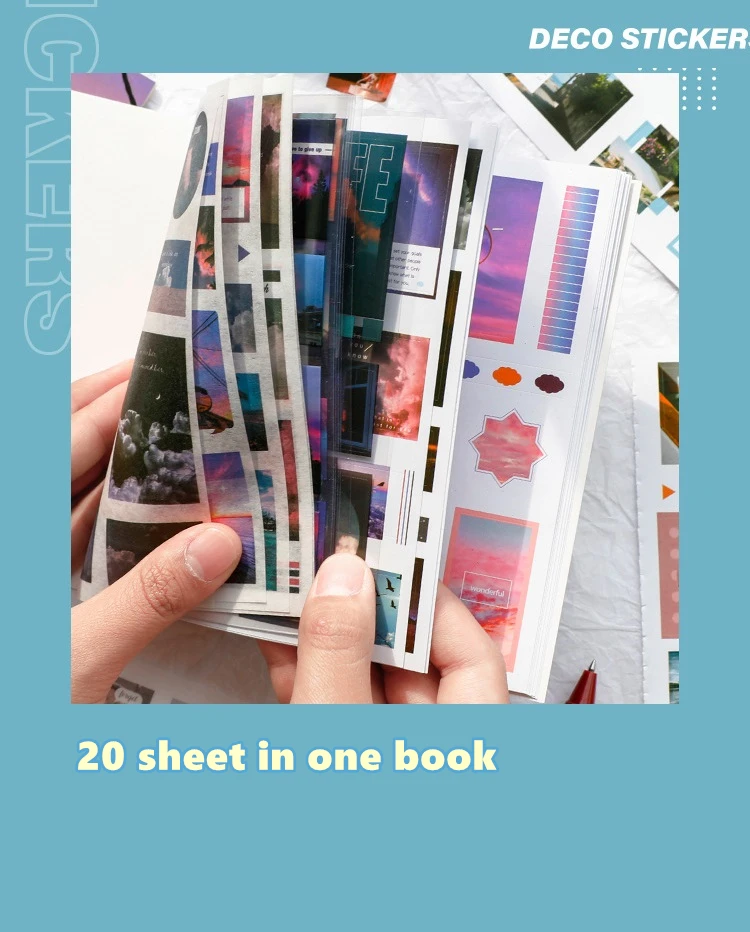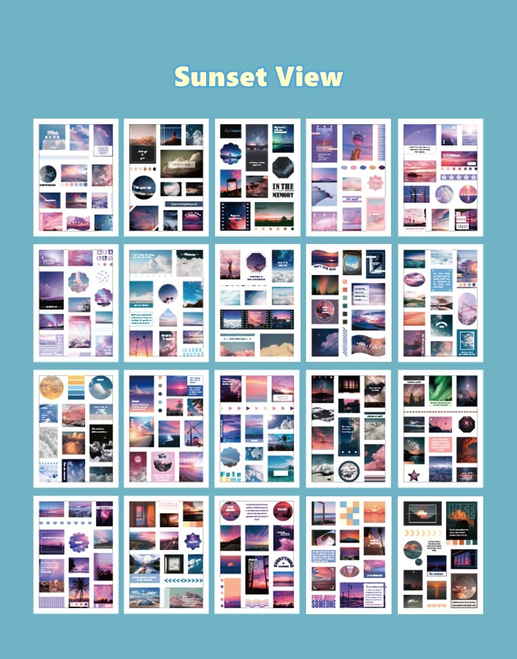 Набор стикеров в стиле ретро, закат, цветы, 20 листов, современное искусство, A6672