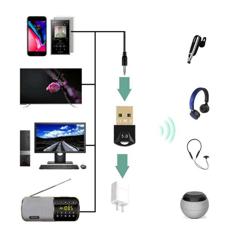 1.Mini USB Bluetooth-совместимый адаптер 5,0 с высокой скоростью до 3 Мбит/с.
