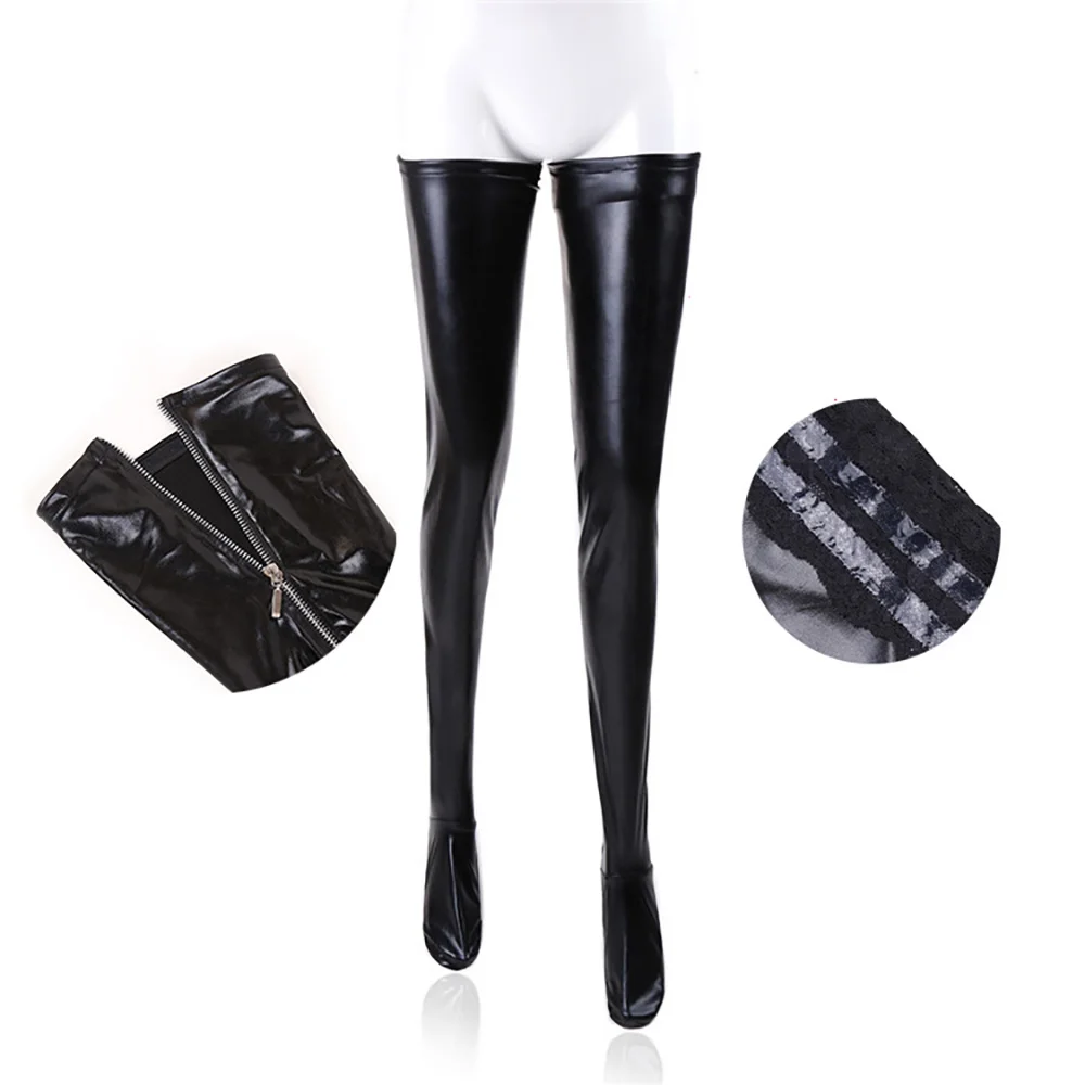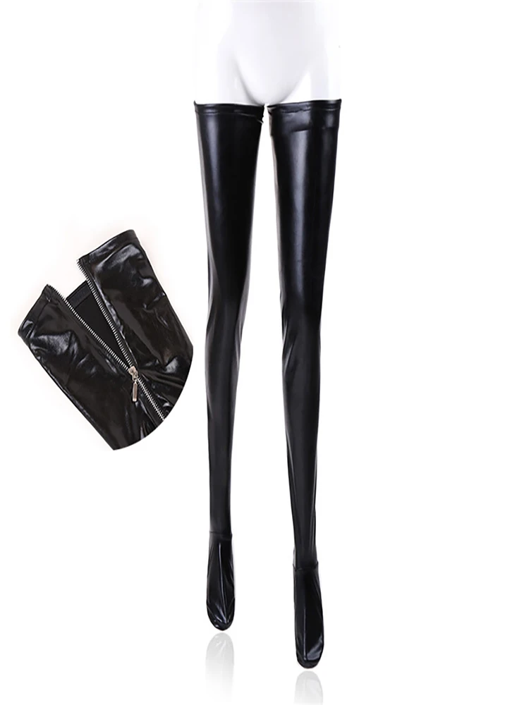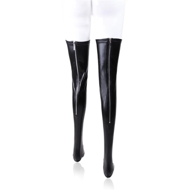 Чулки женские, латексные, на молнии, искусственная кожа, до бедра, ...