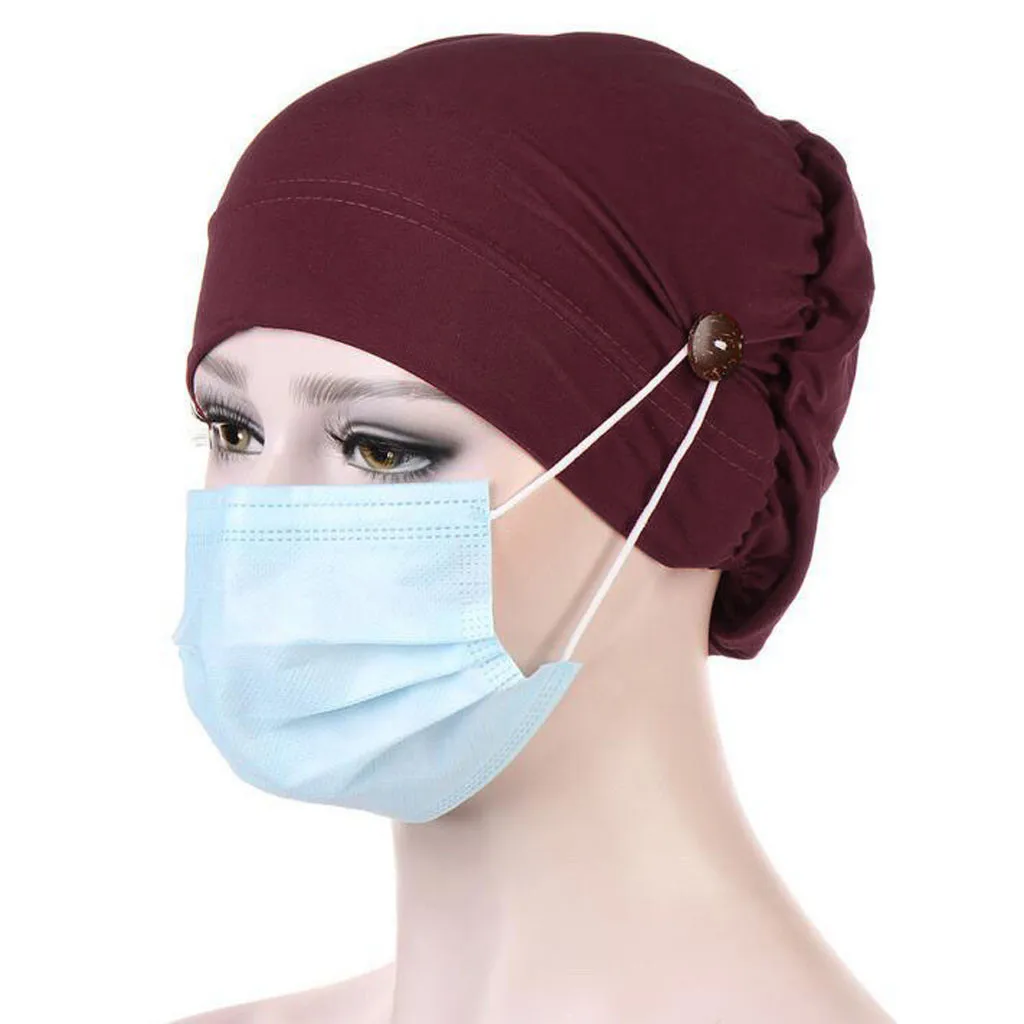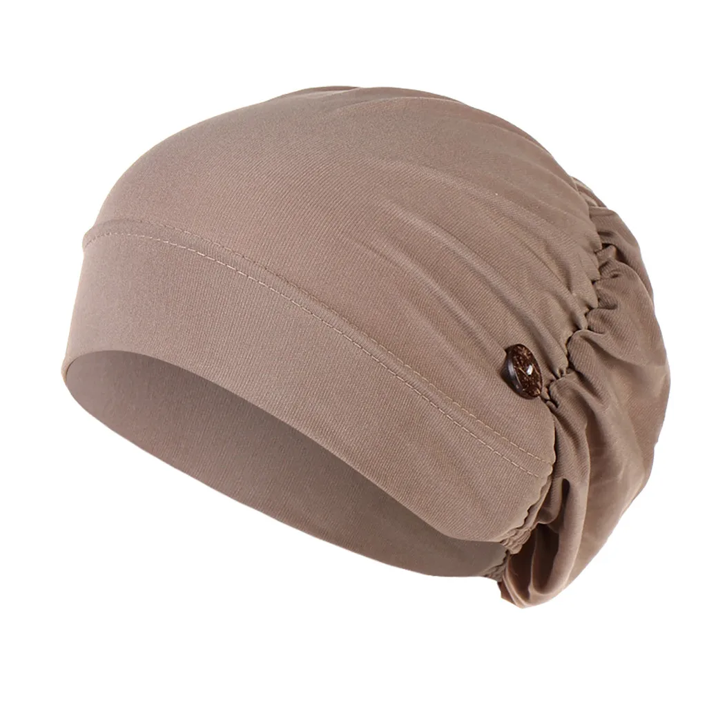 Новинка 2021, модная Женская Шапка-бини с цветочными мусульманскими пуговицами, Шапка-бини, шарф-тюрбан, головной убор, однотонные женские шапки, Новинка