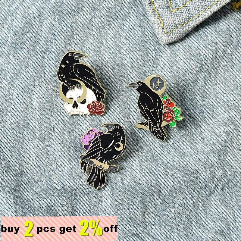 Готическая ворона Роза Птица лацкан эмалевые булавки панк Луна Любовь смерти броши значки модная Готическая булавка подарки для друзей оптовая продажа