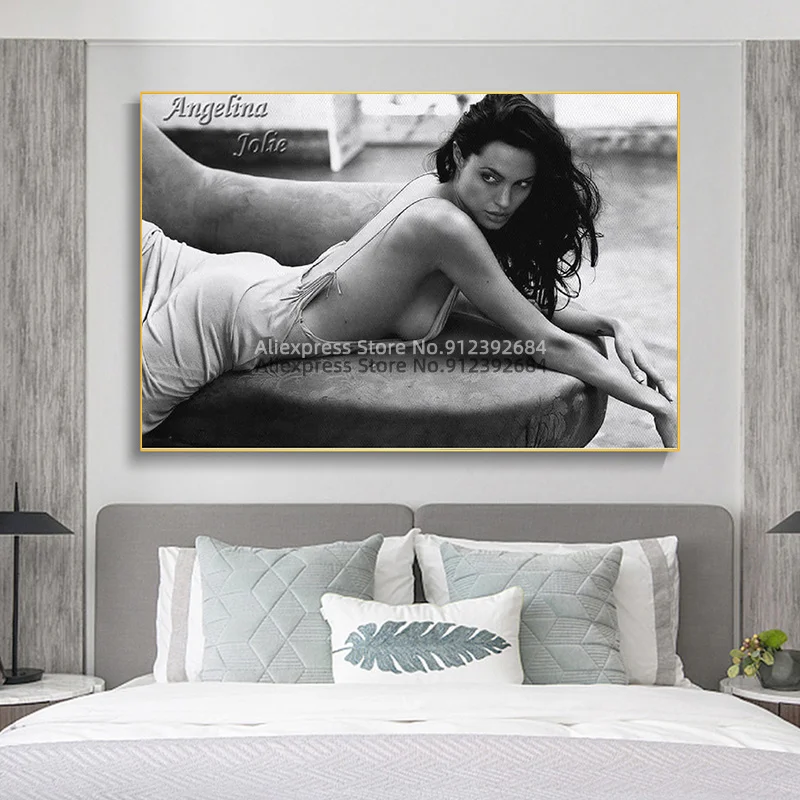 Черно-белый плакат Анджелина Джоли, эстетическая фотография, Настенная картина, печать, постер для гостиной