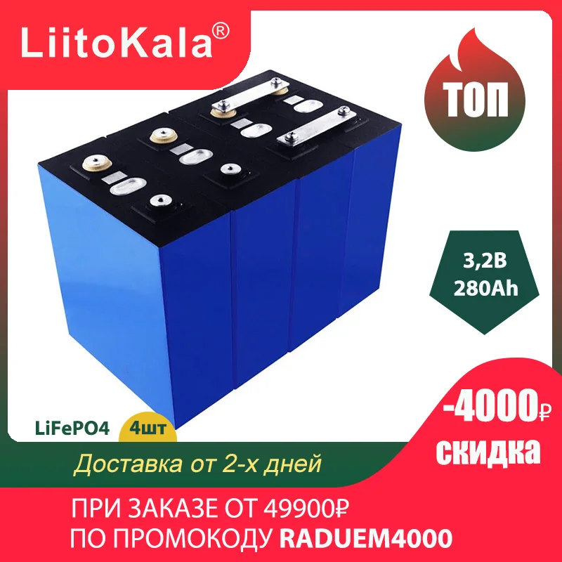 4 шт. Аккумуляторная батарея LiitoKala 3,2 В, Lifepo4 280Ah
