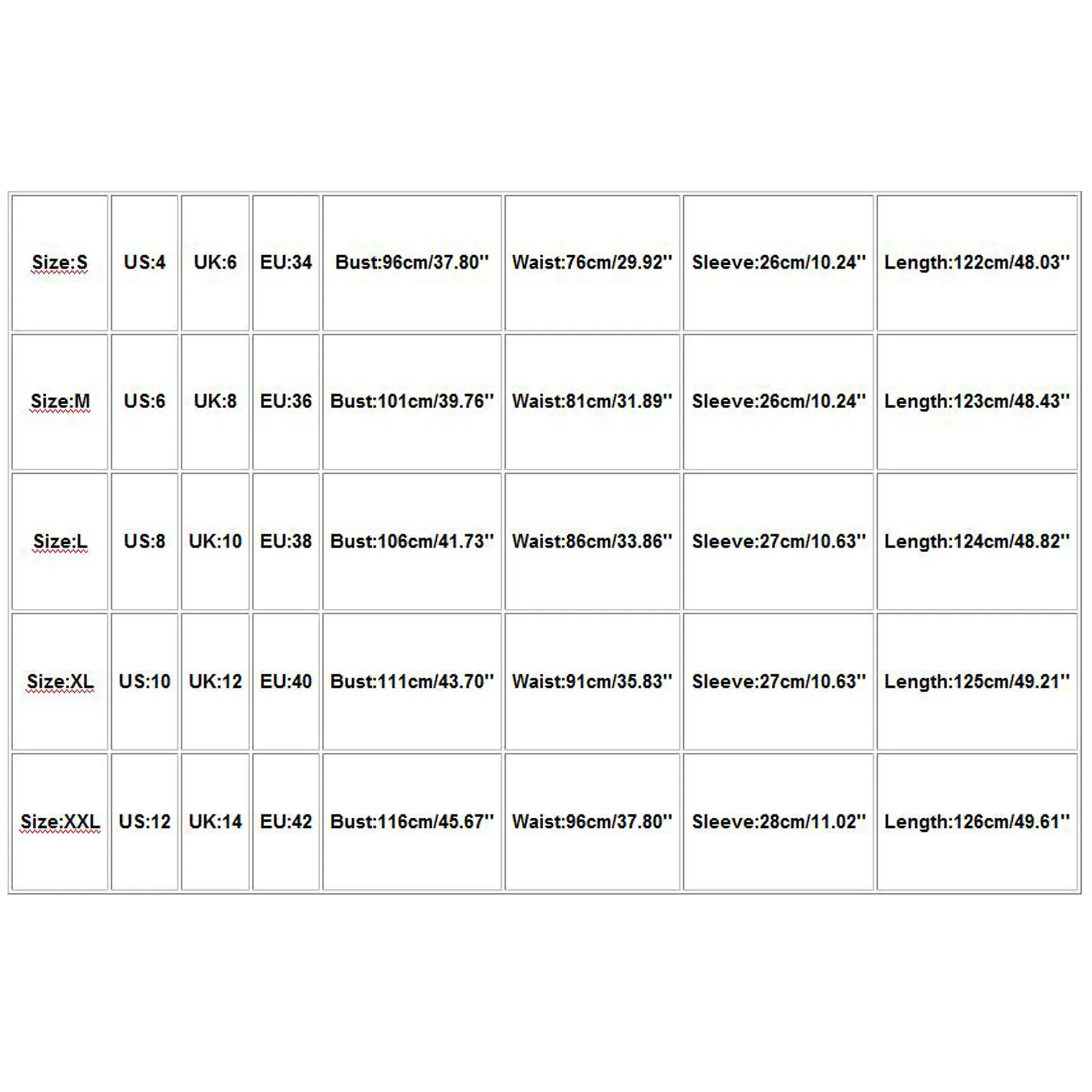 Обхват груди: 96 см/37,80 дюйма