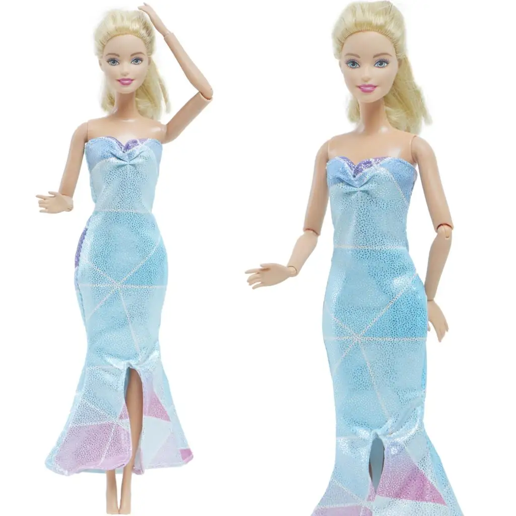 Платье принцессы BJSBUS, синее блестящее платье русалки, юбка рыбий хвост Вечерние вечернее платье, свадебная одежда, Одежда для куклы Барби, аксессуары, детская игрушка