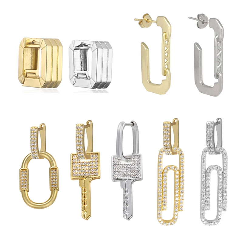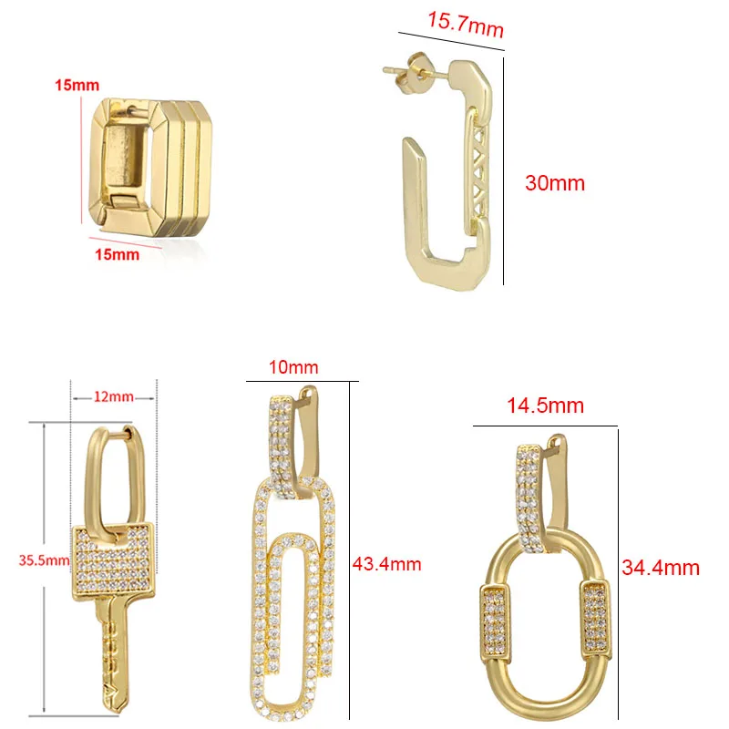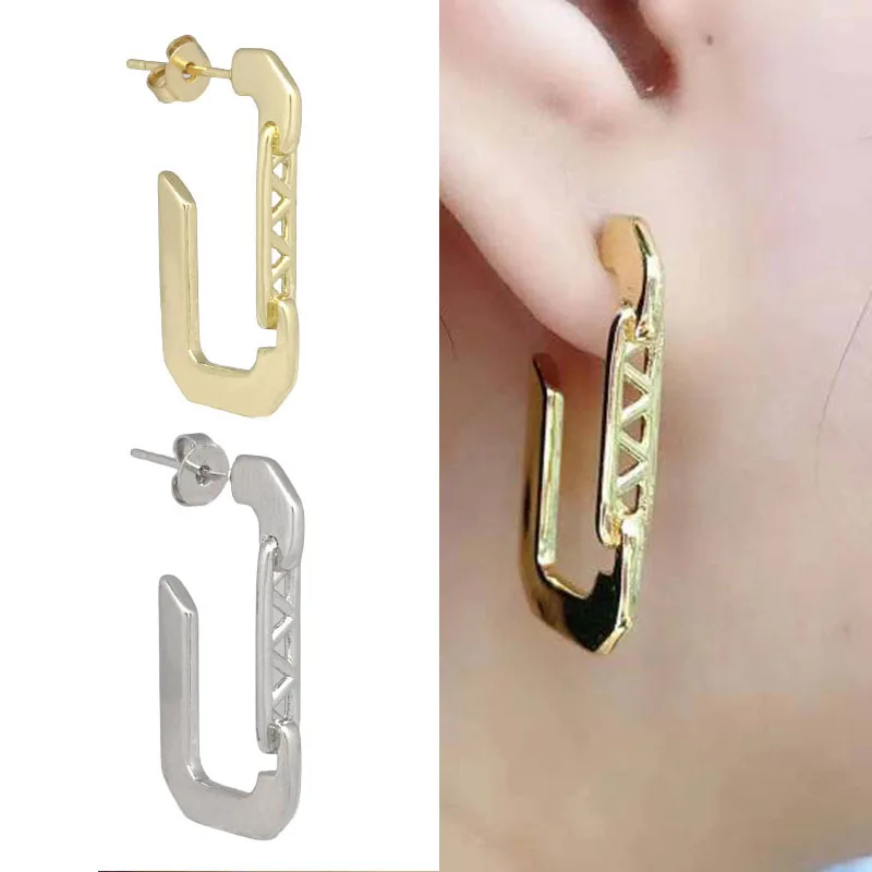 Женские Геометрические серьги-кольца QMHJE, прямоугольные квадратные металлические серьги в полоску с фианитами золотого и серебряного цветов
