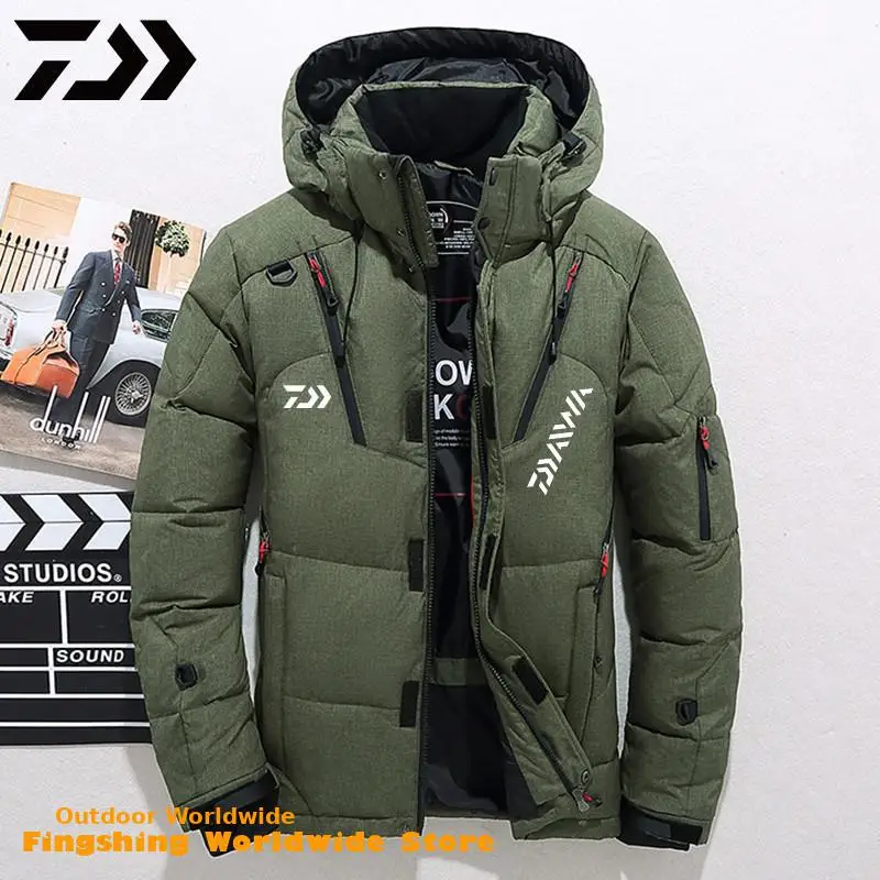 Куртка мужская зимняя на белом утином пуху, плотная ветровка, парка...