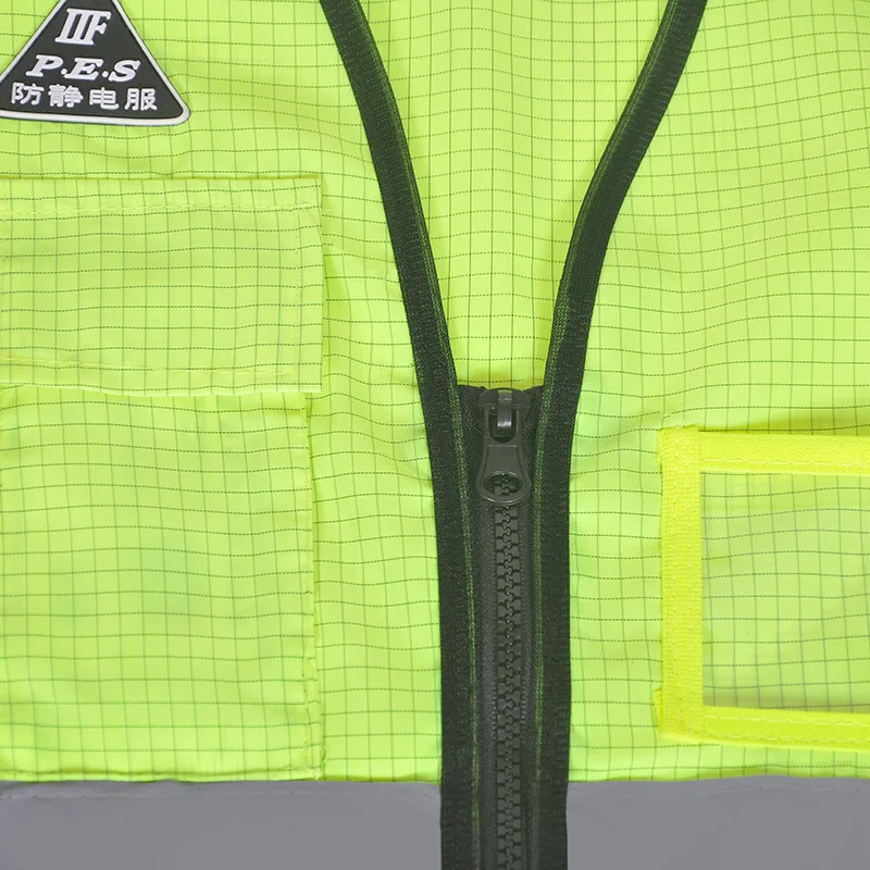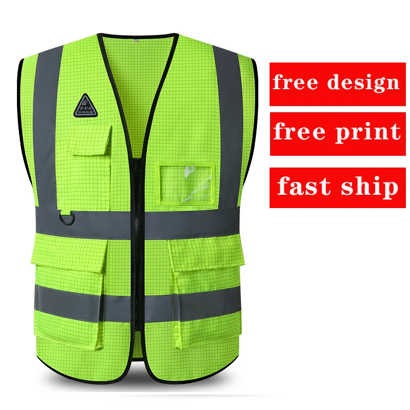 100% антистатический полиэстеровый защитный жилет для мужчин, карманы и молния, высокая видимость, строительная Масляная Станция, светоотражающий Рабочий жилет