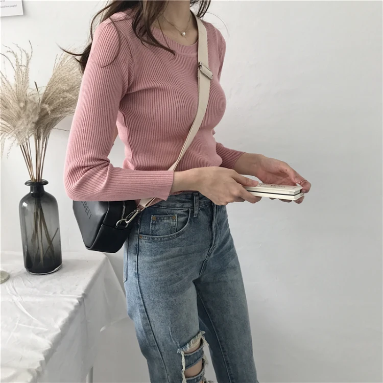 Женский трикотажный свитер, повседневный облегающий розовый пуловер...