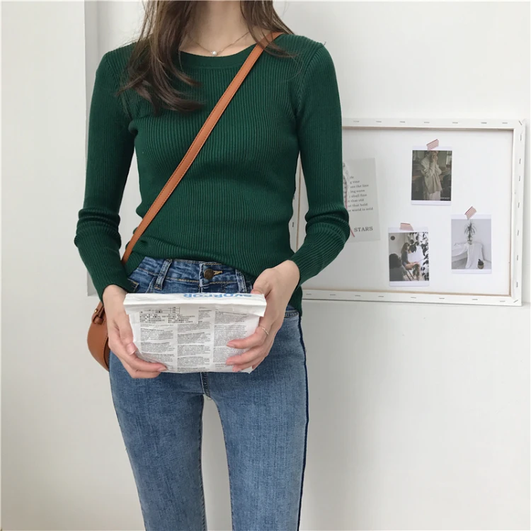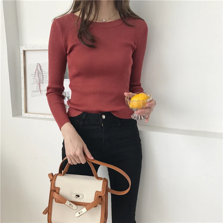 Женские свитера, осенне-зимние женские топы с круглым вырезом, тонкий пуловер, вязаный джемпер, мягкая теплая футболка в полоску