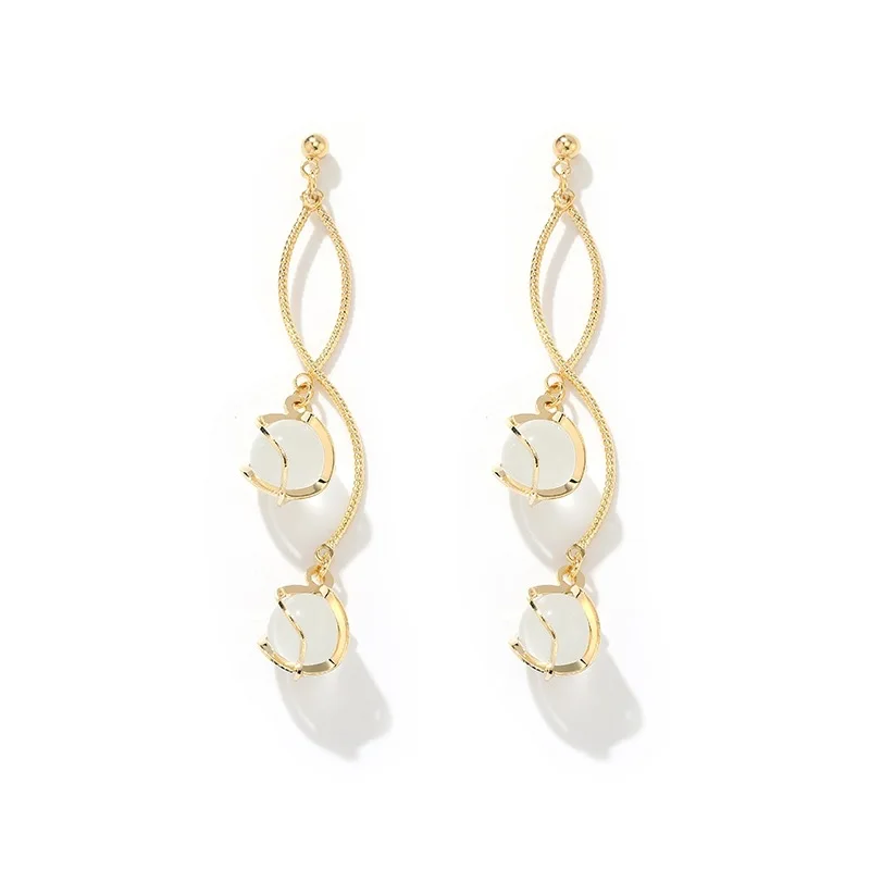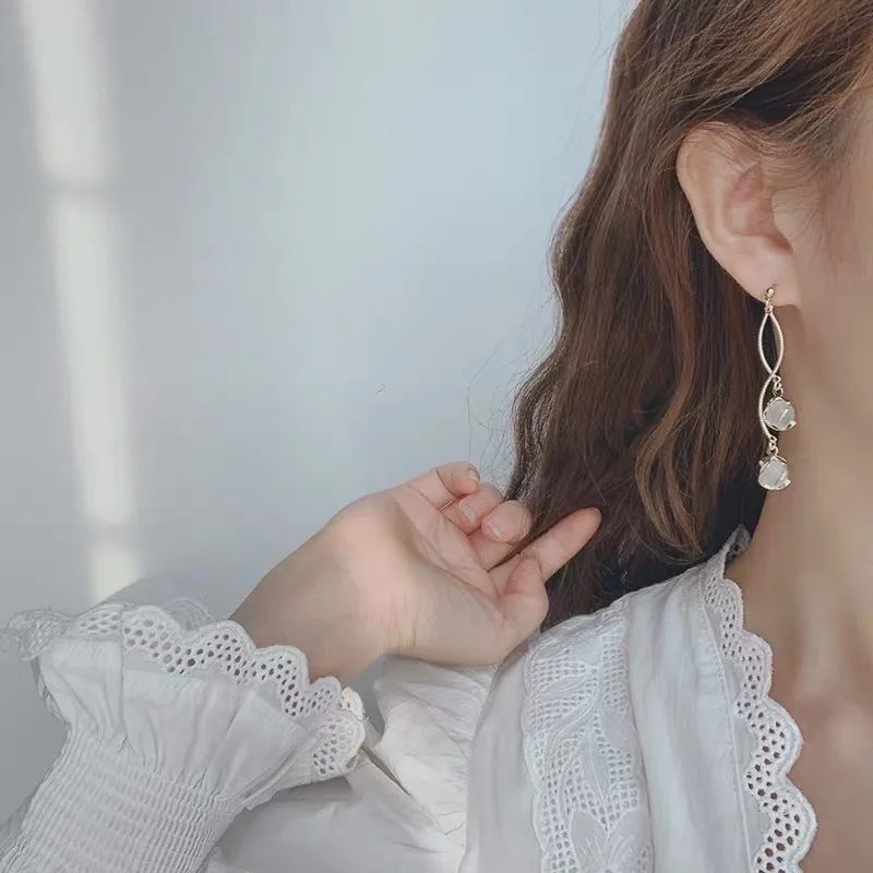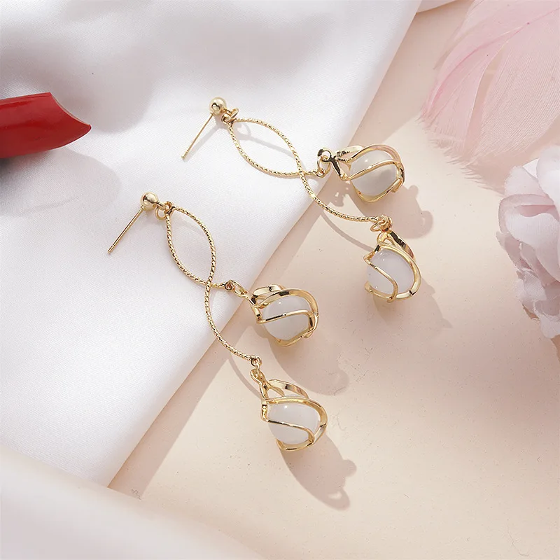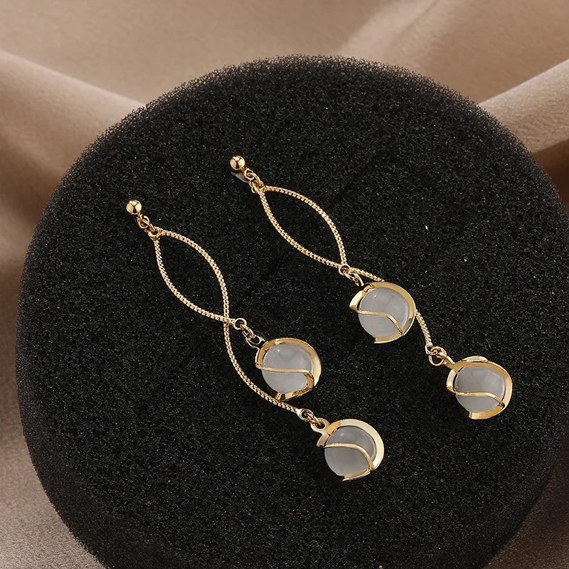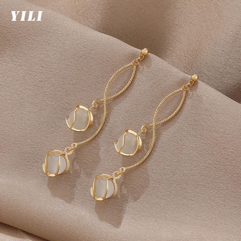 2021 новые модные Подвесные серьги с опалом, корейские золотые металлические подвесные серьги с опалом и кисточкой для женщин и девушек, бижутерия для вечеринки и свадьбы