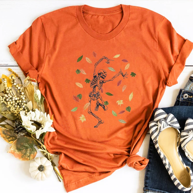 Женские футболки с надписью "Танцующий Скелет", милая Осенняя футболка на Хэллоуин, уличная одежда, Женский Топ на Хэллоуин, забавные женские топы