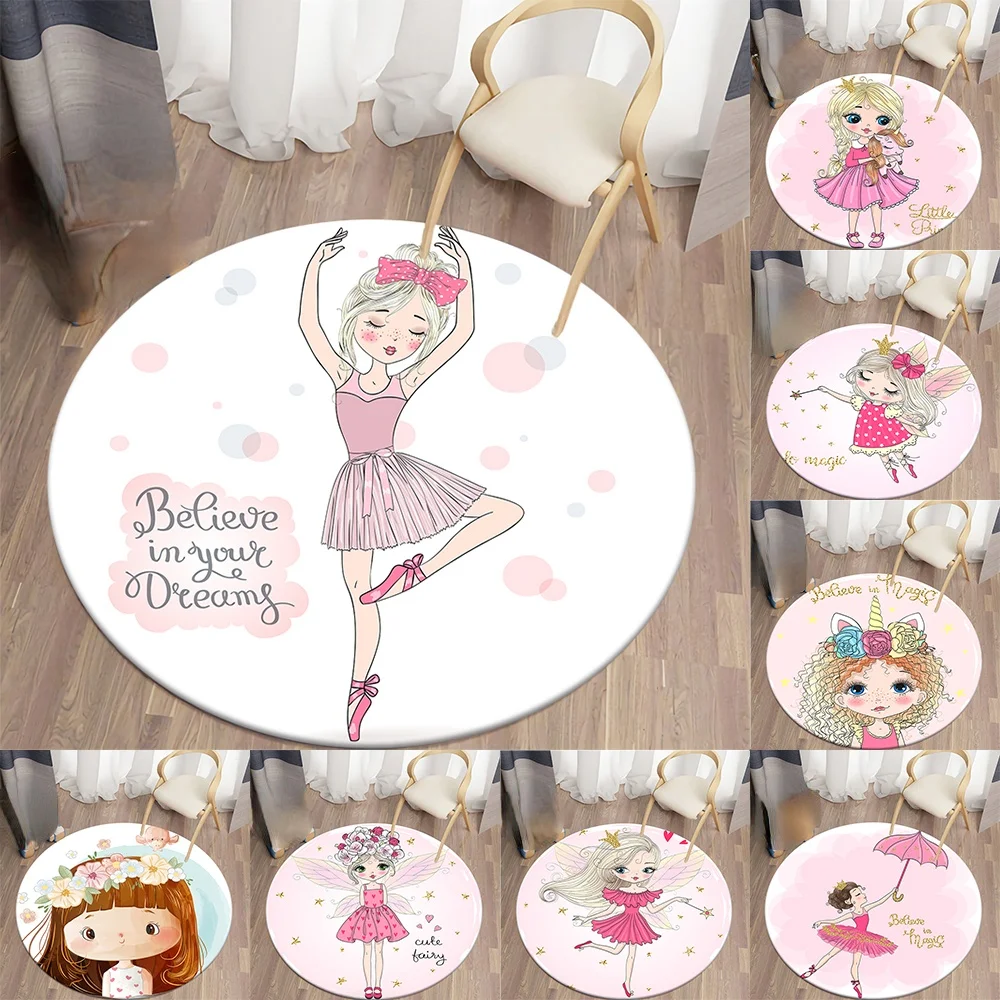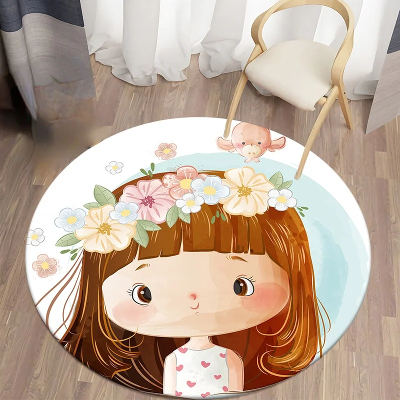 Мультяшные коврики для детской комнаты, круглые коврики серии розов...