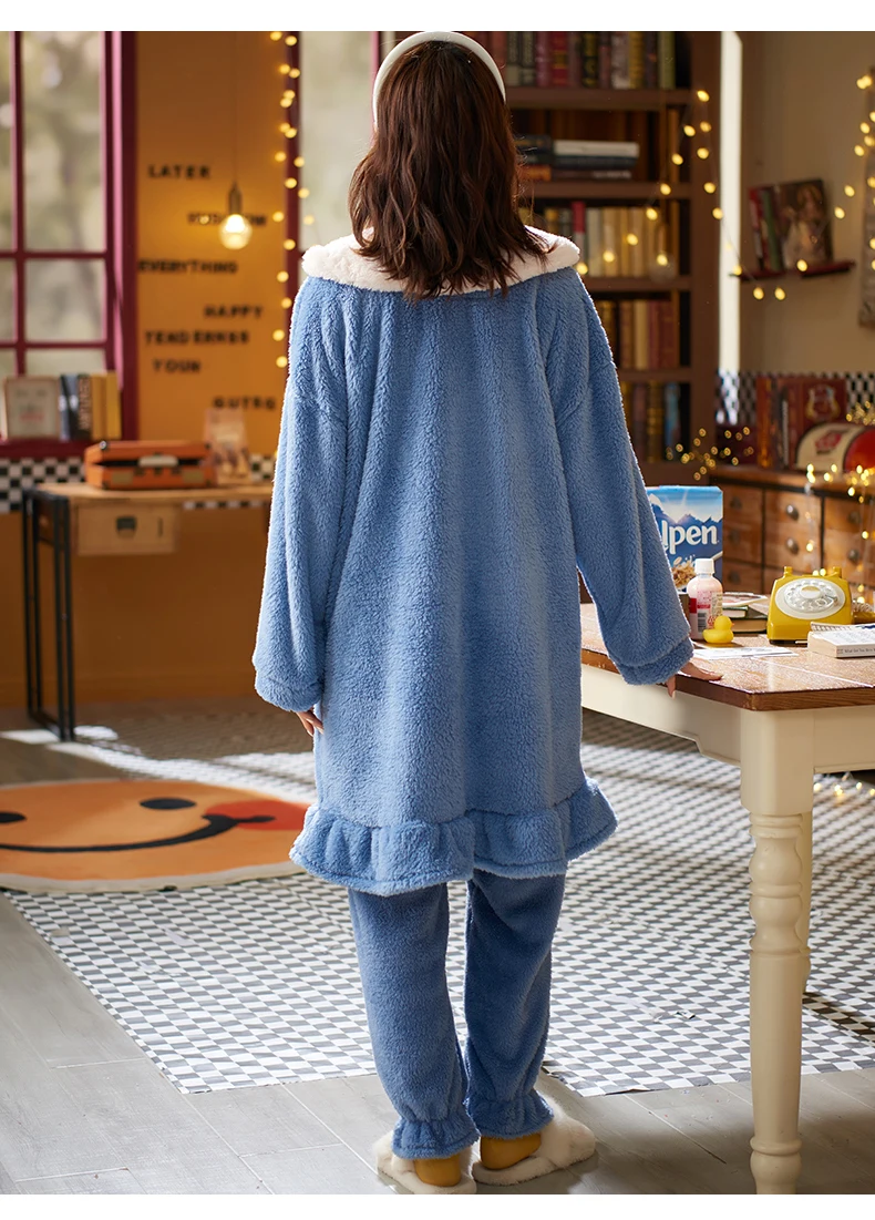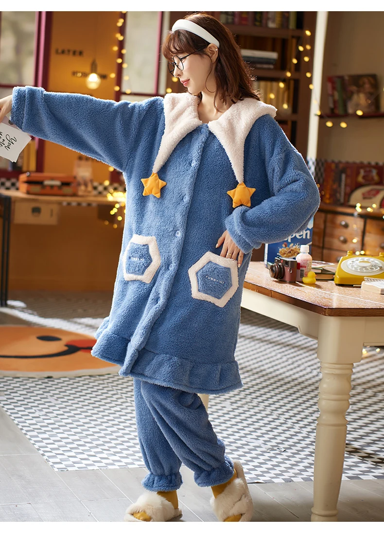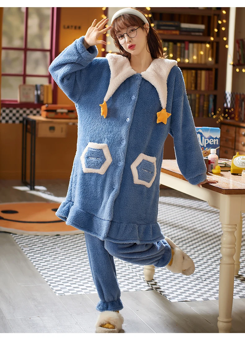 2021 пижамные комплекты с толстым рукавом мультяшная одежда для сна тонкая осенне-зимняя теплая фланелевая Женская Фланелевая пижама набор кораллового бархата ночная рубашка