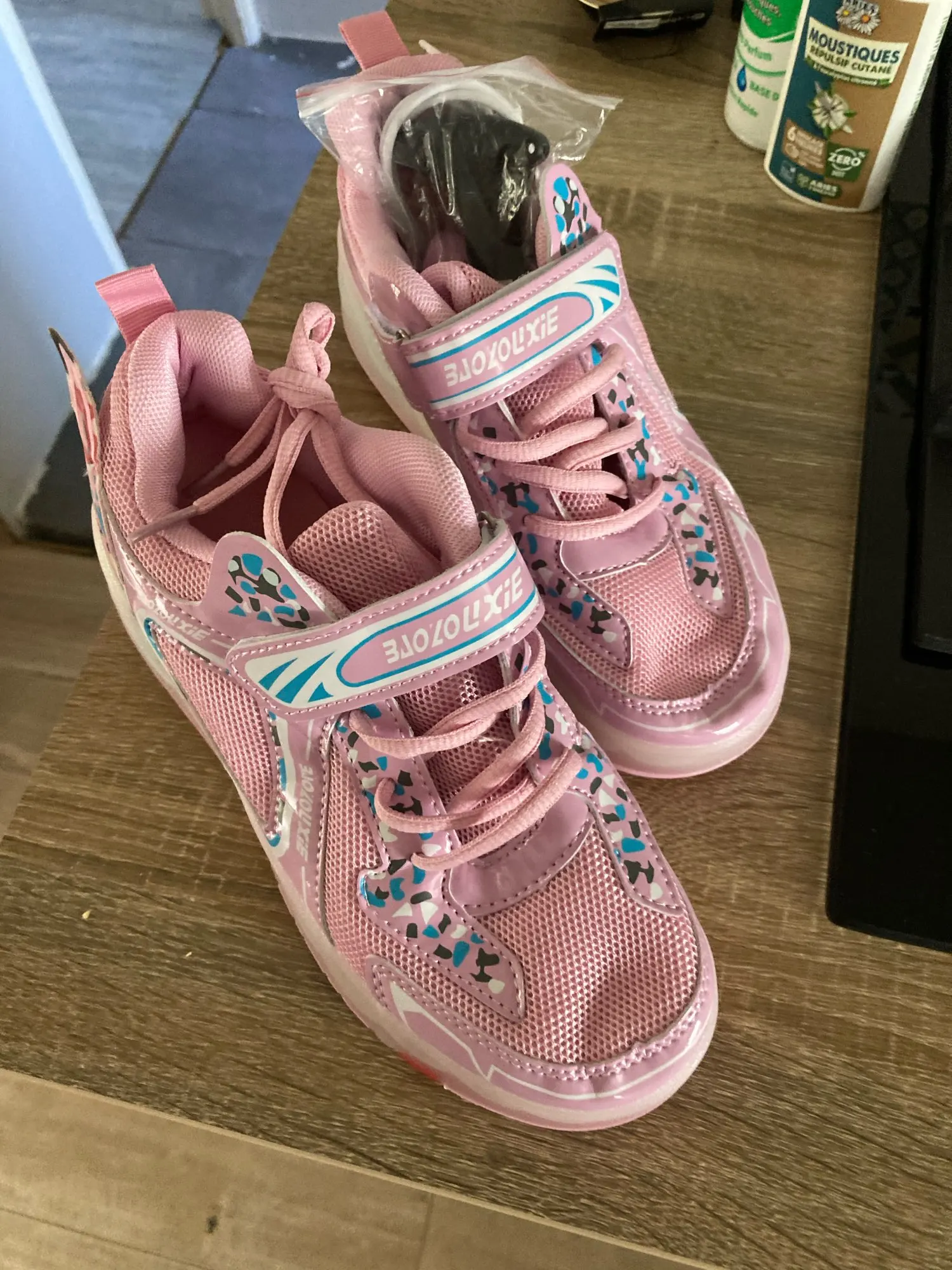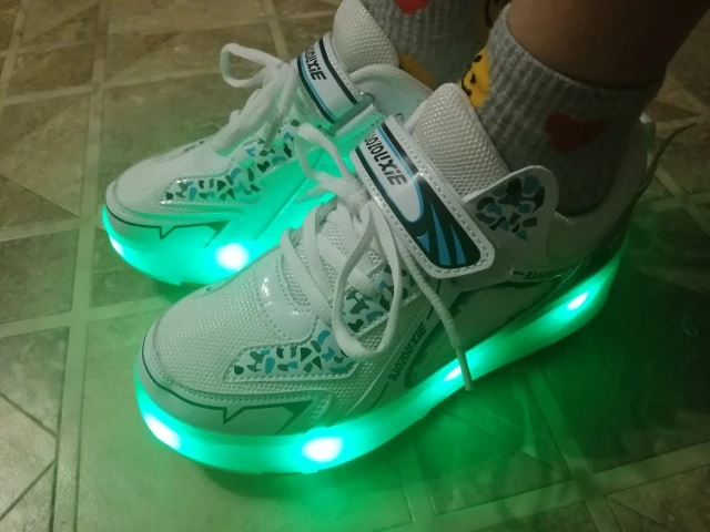 Они нереально красивые. Такие же как на картинке. Лампочки светятся ярко. Заряд и кнопочка так прикольно спрятаны под липучкой. Колесики легко вставляются, а задние выезжают нажатием кнопки. Вобщем все супер ребёнок счастлив. По размерам мы взяли на один больше, все отлично не впритык