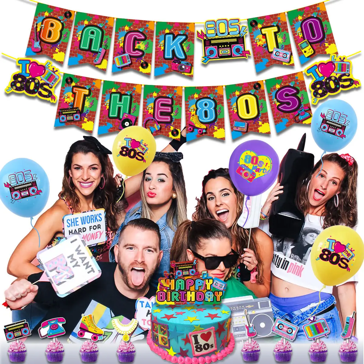 Тематическое украшение для вечеринки в стиле 80-х, флаг в стиле 80-х, Натяжной воздушный шар, набор для открыток, товары для друзей