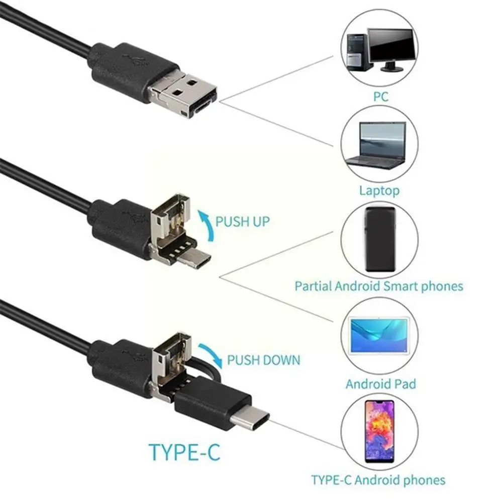6 высокой яркости светодиодный свет регулируются (подгоняются под полностью закрытом состоянии).Камера HD coms. Спецификация длины линии (2 метра). Уровень водонепроницаемости: IP67.Разрешение: 5,5/7,0 мм объектив 640*480. Интерфейс Android, распределительный usb-кабель-адаптер.Номер кадра: 30 кадров в секунду. Эффективное фокусное расстояние: 3-10 см.ПараметрыСветодиодный usb-эндоскоп Type6Цвет черныйЛиния Длина: 1m/2m/3,5 m3-в-1 конвертерTYPE-C/Mirco/USBСтиль: мягкая линияПосылка включает в себя1x3 в 1 промышленный эндоскоп1 х боковое зеркало1 х крючок1 х Магнит1 x Руководство пользователя