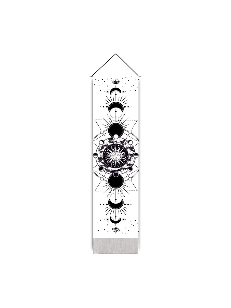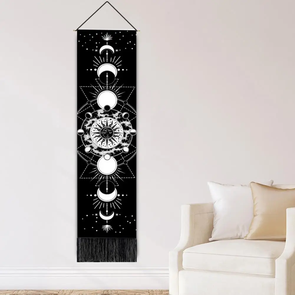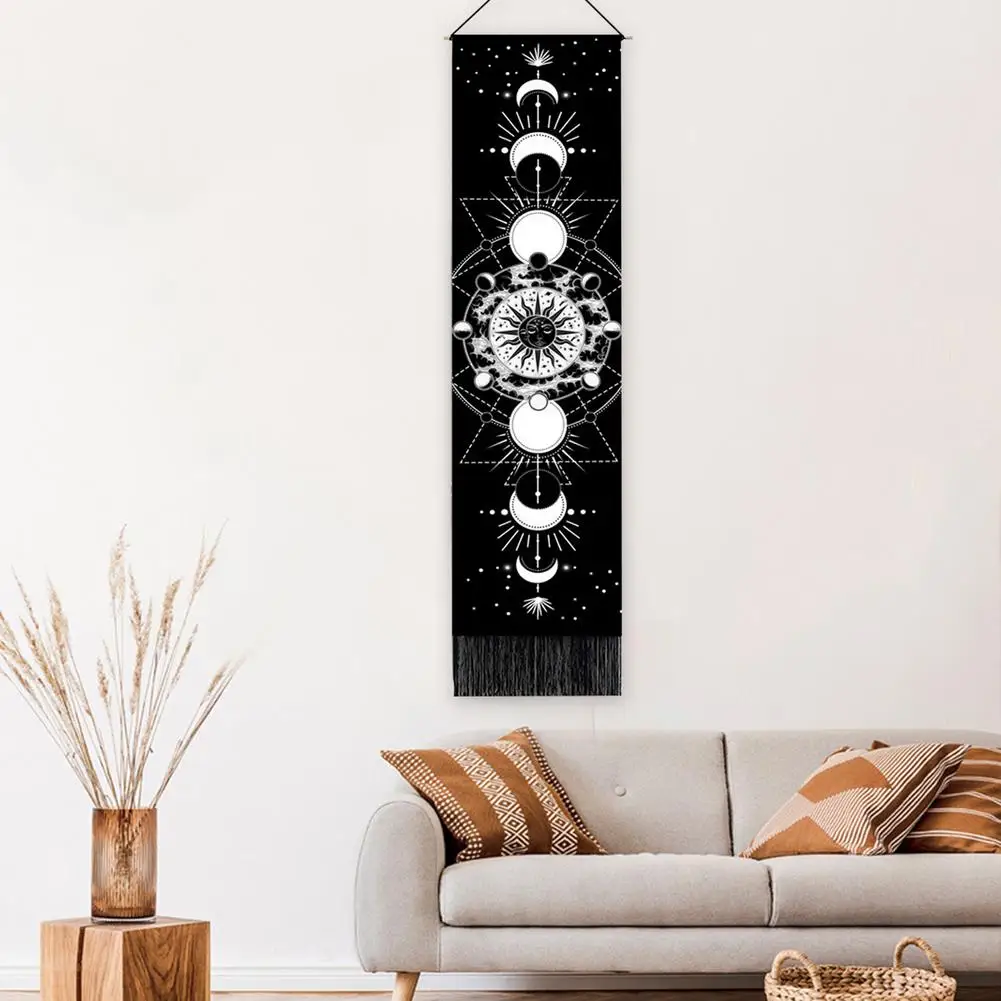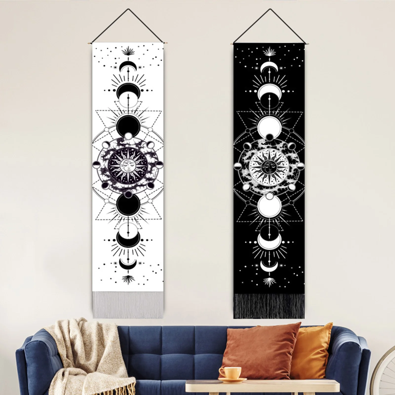 Украшение с солнцемлунным затмением, подвесной свиток с рисунком, черный, белый, в богемном стиле, для гостиной, двери, с кисточкой, гобелен, баннер