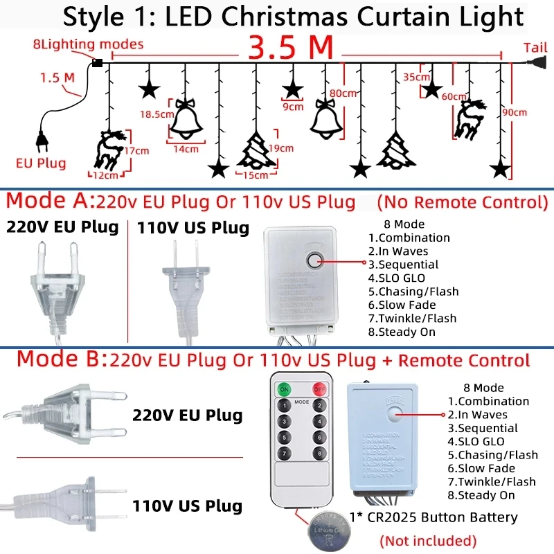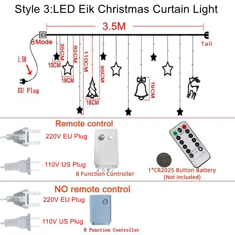 Стиль 3: светодиодный Рождественский занавес-светильник Eik