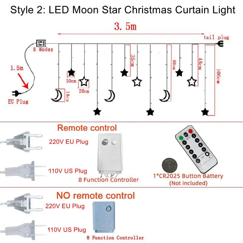 Стиль 2: светодиодный светильник для рождественской занавески Moon Star