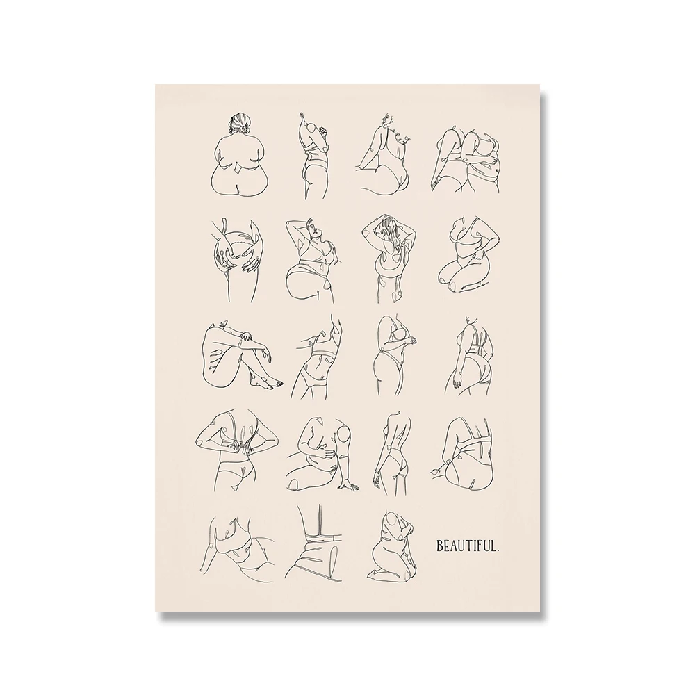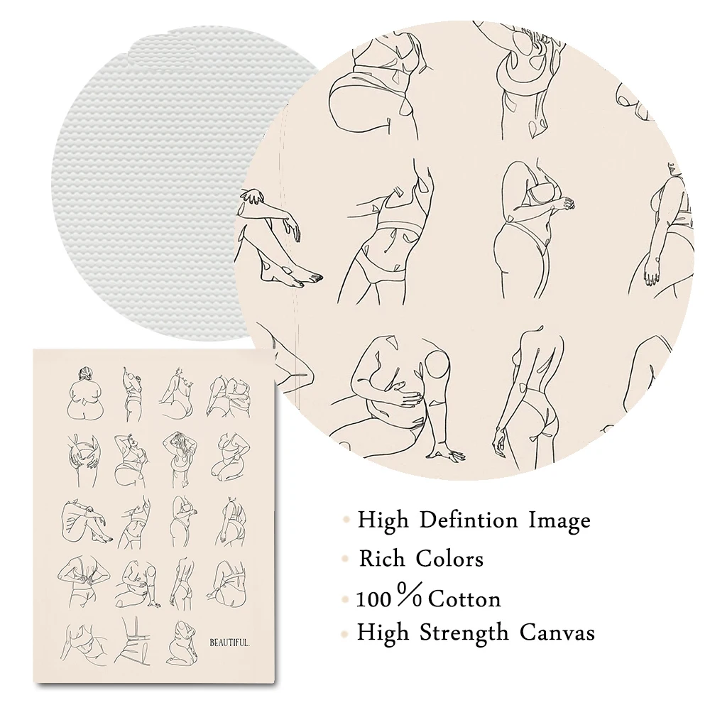 Красивые позитивные художественные принты на теле, женские Плакаты для рисования обнаженного цвета, феминистские настенные картины, холст для рисования, декор для ванной комнаты