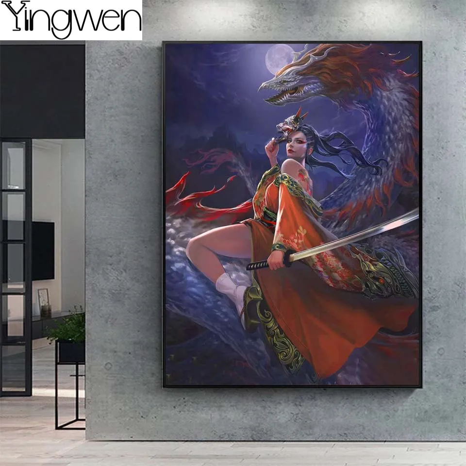 5D домашний декор японский воин Алмазная роспись дракона мозаика женщина Стразы фотографии 3D вышивка крестиком полный дисплей