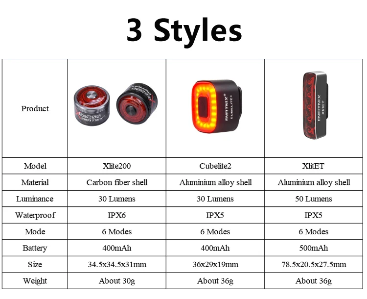 Велосипедный фонарь ENFITNIX Xlite200, умный задний фонарь с датчиком торможения, водонепроницаемость IPX6, зарядка через USB
