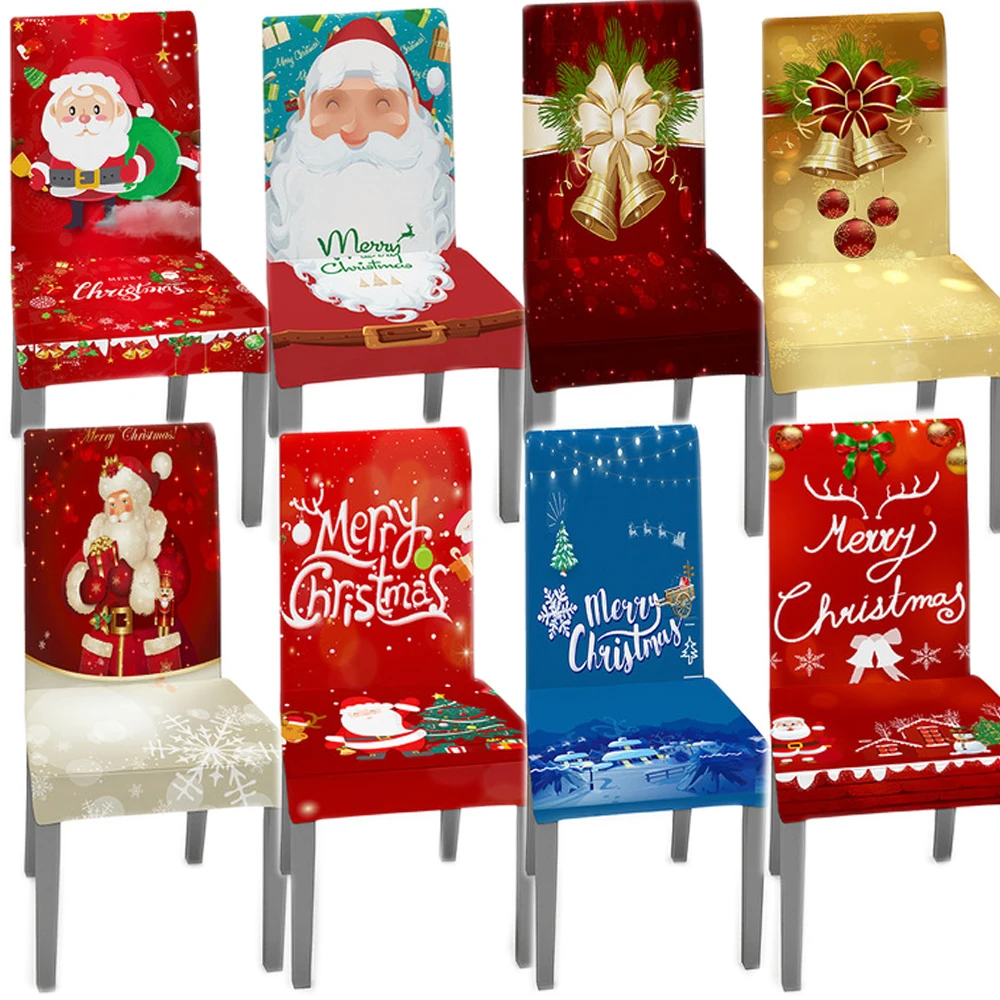 Новинка 2021, чехлы для стульев на Рождество, эластичные Чехлы для обеденных стульев с принтом Санты, чехол для кресла, Кухонное сиденье, домашний декор