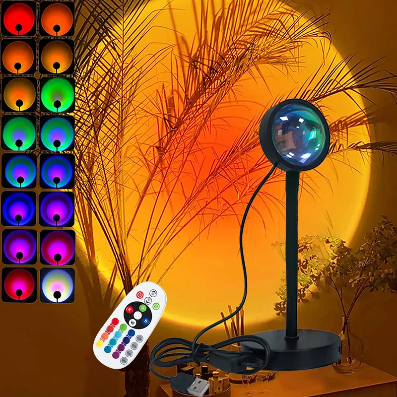 RGB закат проекционная лампа с дистанционным управлением 16 цветов Изменение радуги Aura Рождественский свет для детей атмосфера подарок