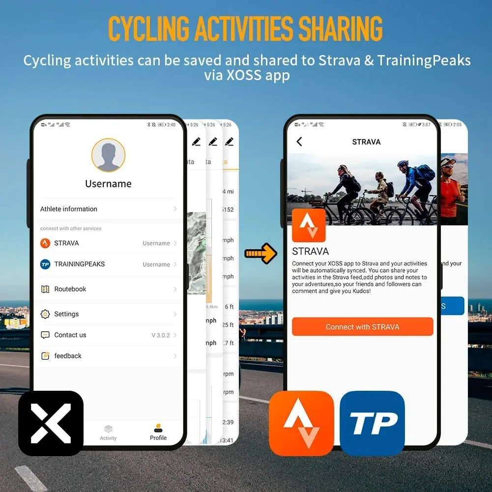 Подключите свою учетную запись Strava к приложению XOSS для синхронизации действий. Для получения более подробной информации обратитесь к пользователю mannual.