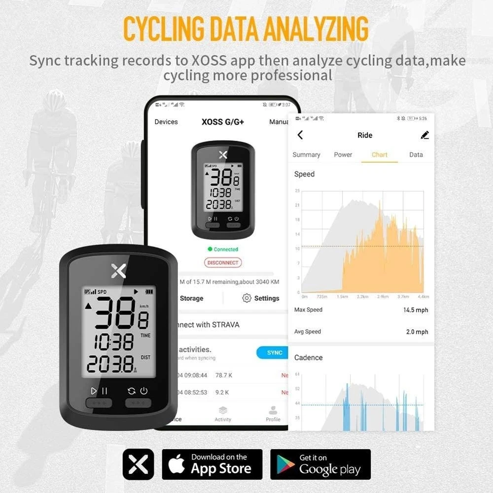 XOSS G + GPS компьютер с Bluetooth и ANT + поддержка для добавления датчика скорости/Каденции и монитора сердечного ритма, поддержка загрузки в мобильное приложение;
