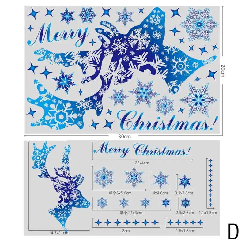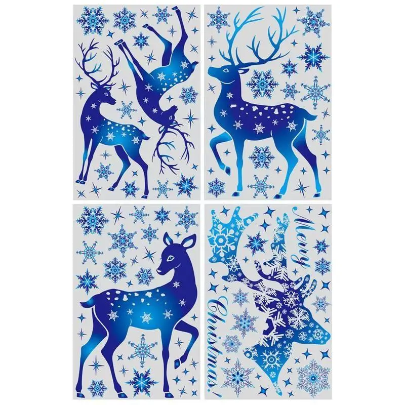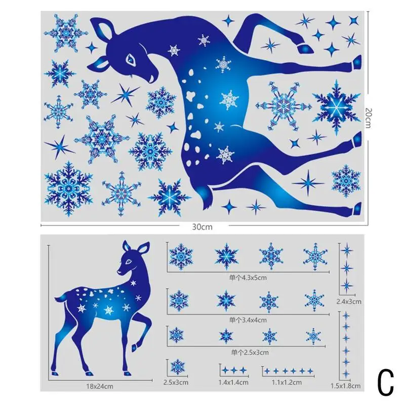 Рождественские наклейки на окно с голубыми оленями и снежинками, зимние Наклейки на стены для детской комнаты, новогодние 2022, рождественские украшения на окна U7x4