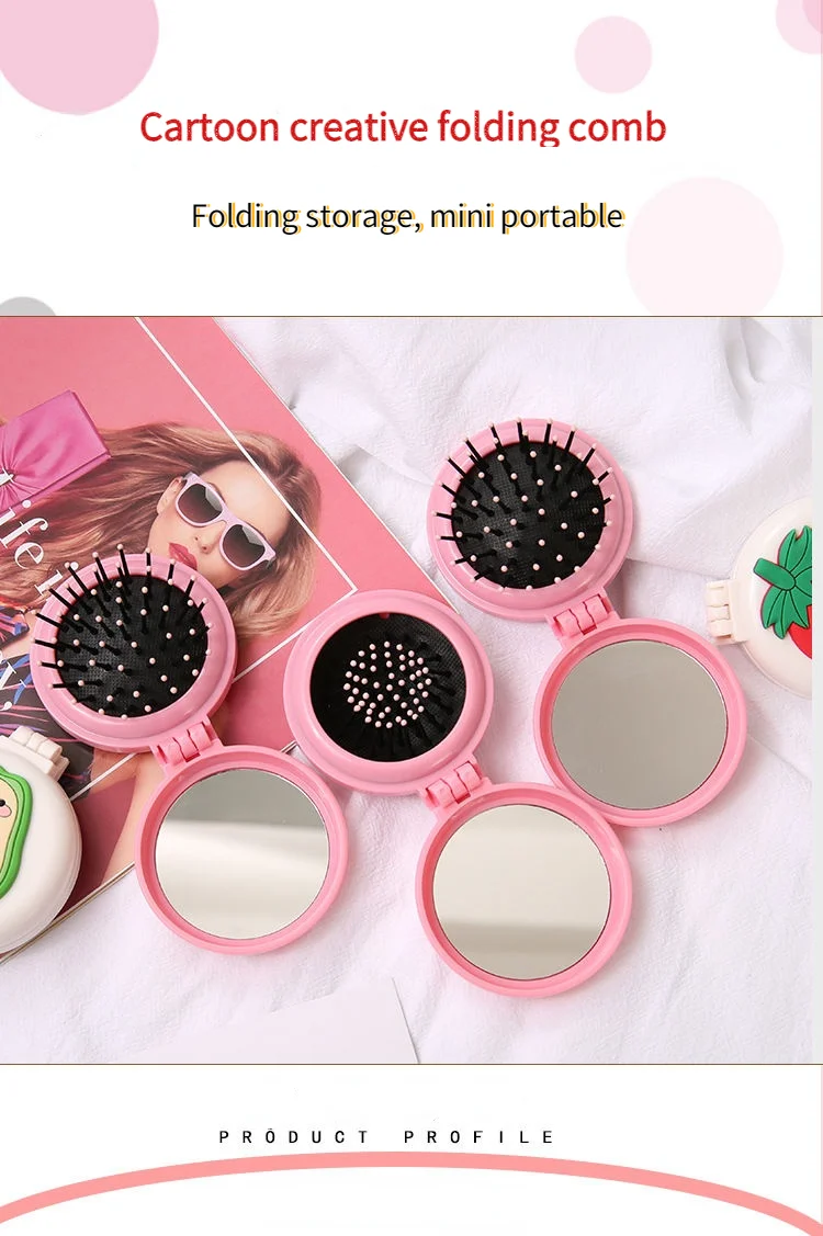2 в 1 Складная мини-расческа для волос с зеркалом Массажная щетка д...