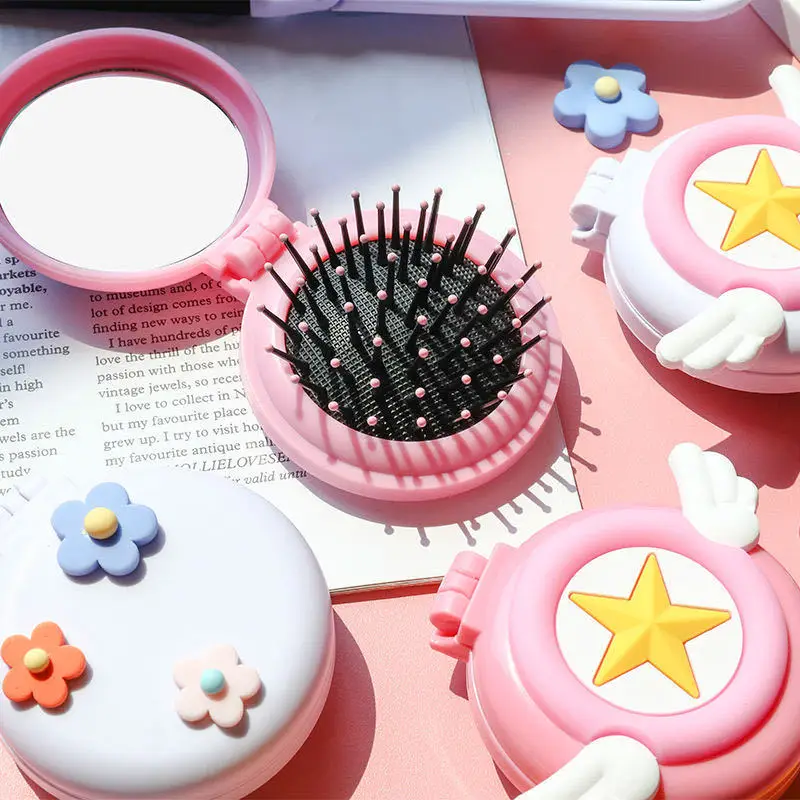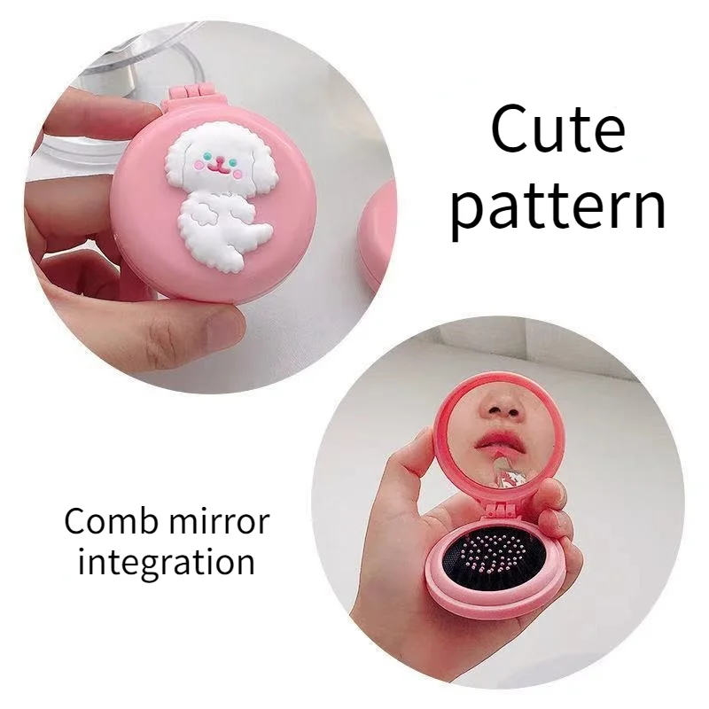 Мини карманное зеркало, милая Массажная Складная зеркало с гребнем,...