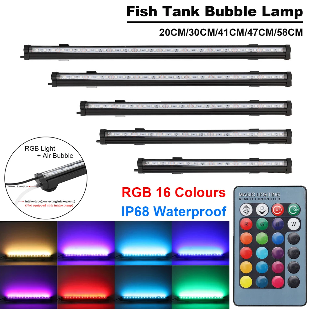 Светодиодсветильник лампа для аквариума, водонепроницаесветодиодный подводная погружная лампа с воздушными пузырьками и пультом дистанционного управления, RGB, 1 шт., 20-58 см