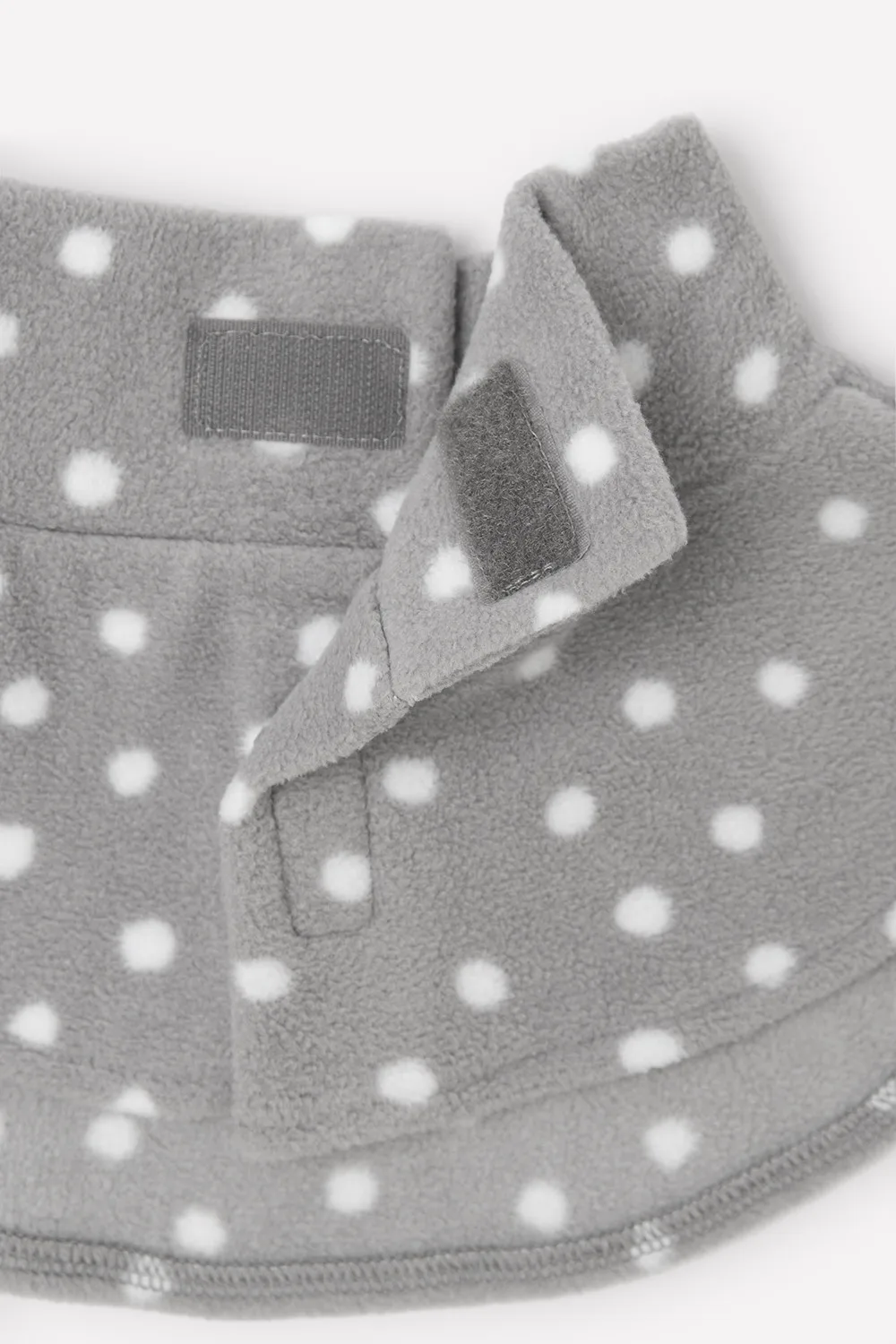 Описание: Манишка из флиса с набивным рисунком. Высокий воротник. На спинке застежка на потайные липучки.